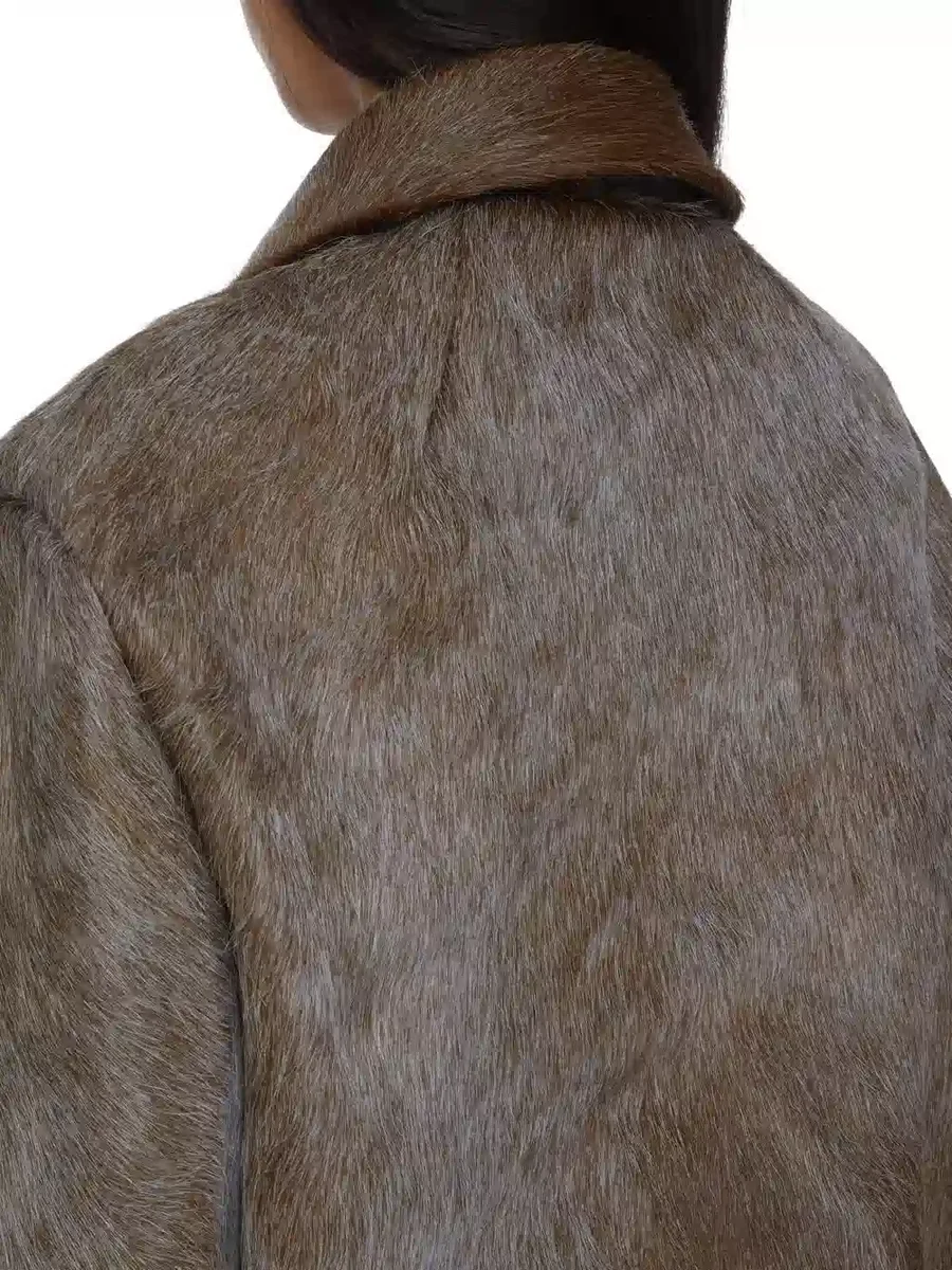 THIS LEATHER IS TANNED IN THE VENETO AREA OF ITALY BY A TANNERY SPECIALIZED IN HAIR-ON COW LEATHER. BECAUSE THE HAIR IS NATURAL THERE CAN BE INCONSISTENCY IN THE LENGTH DIRECTION, TEXTURE AND COLOR.