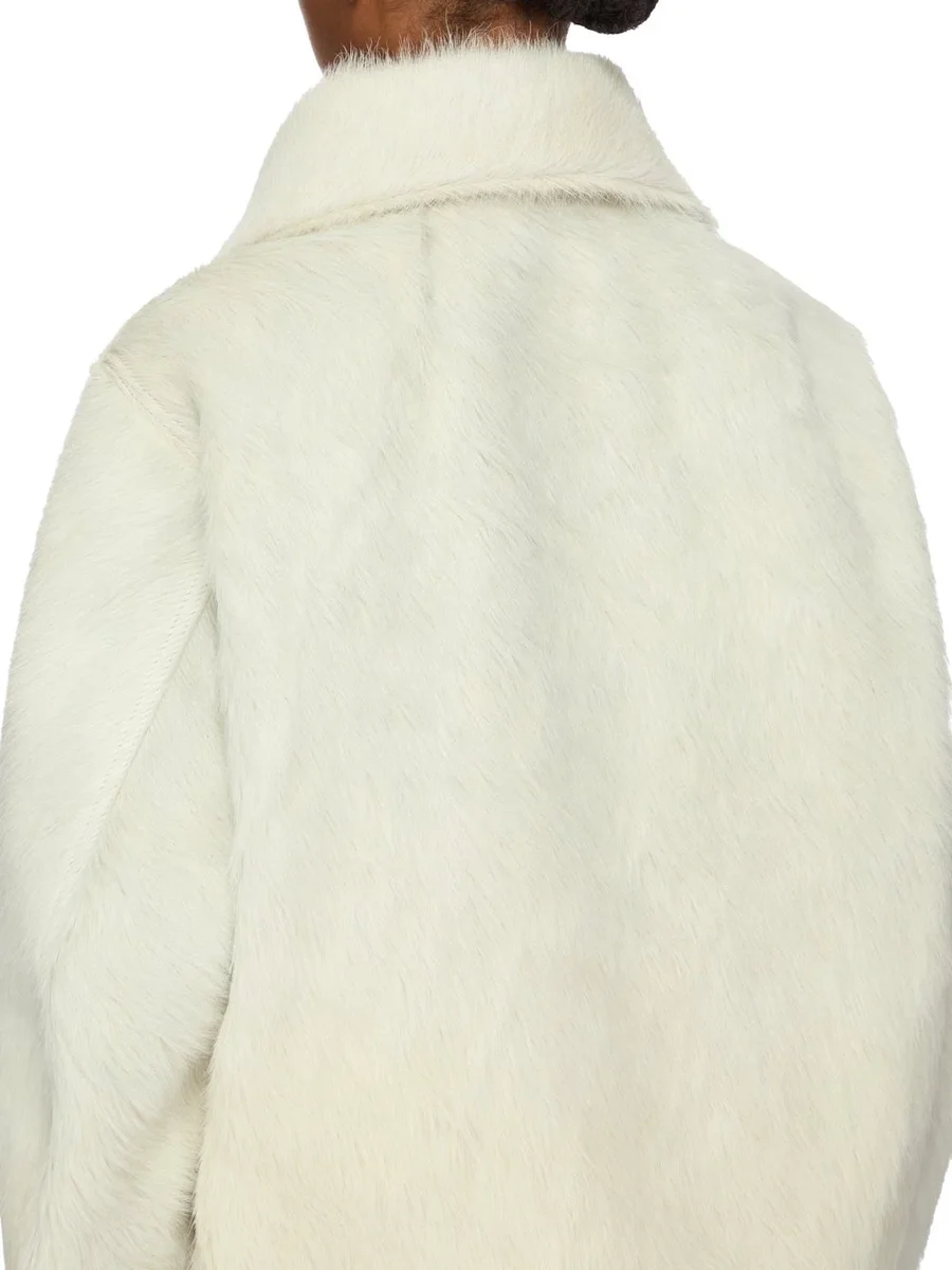 RICK OWENS FW25 CONCORDIANS RUNWAY DRACUCOLLAR FLIGHT IN MILK UNSHAVED COW LEATHER