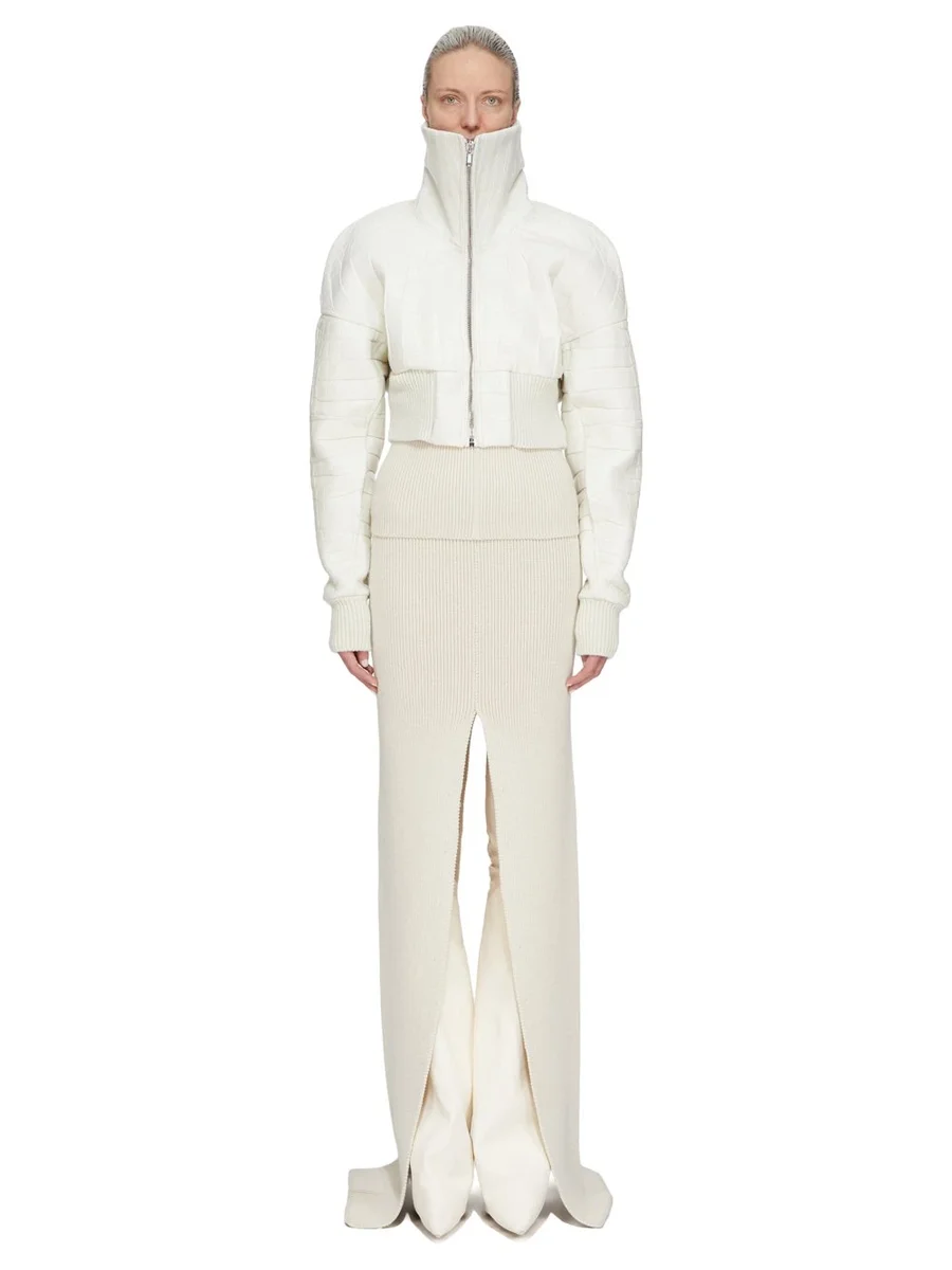 RICK OWENS FW25 CONCORDIANS RUNWAY DRACUCOLLAR CROPPED IN MILK ALBINO ALLIGATOR