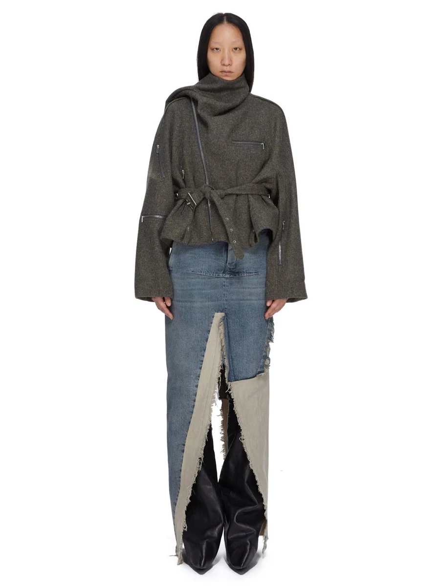 RICK OWENS FW25 CONCORDIANS RUNWAY CROPPED SCARF FLIGHT IN BOSCO RUGGED WOOL