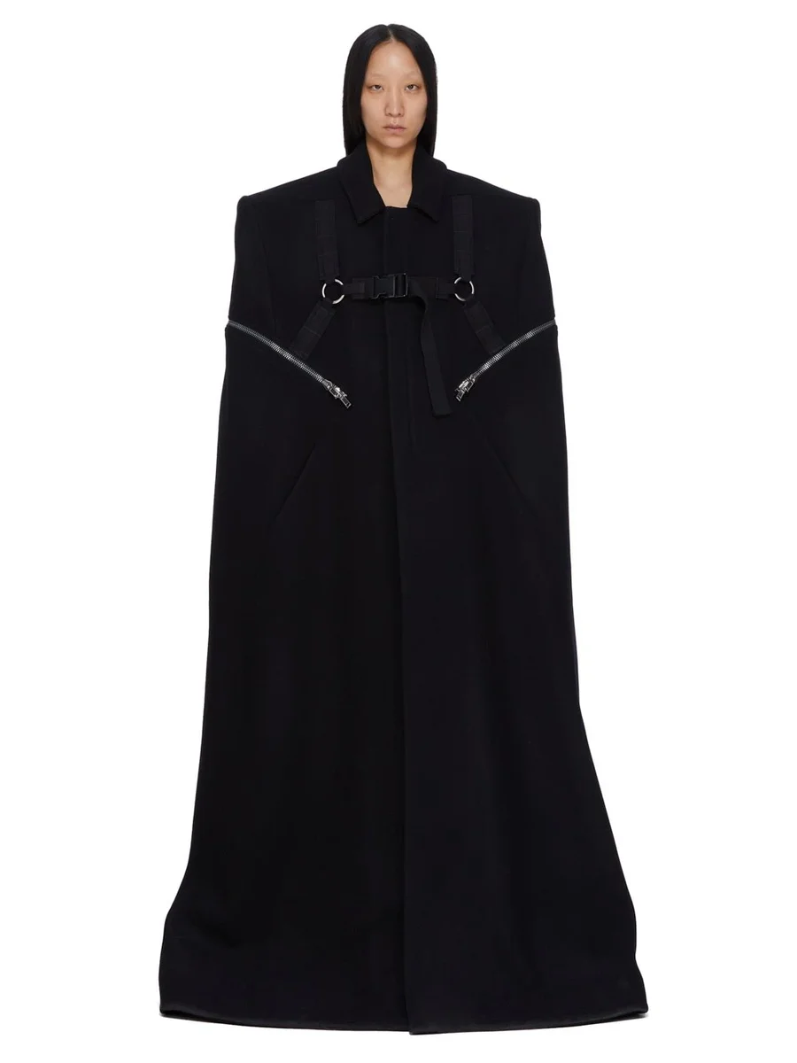 RICK OWENS FW25 CONCORDIANS RUNWAY BLIXA CAPE LONG IN BLACK MELTON