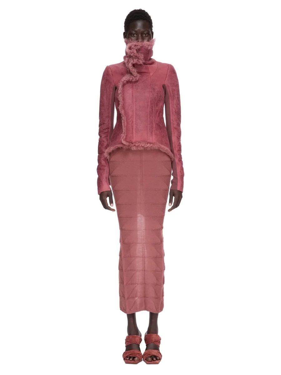 RICK OWENS FW25 CONCORDIANS NASKA BIKER IN ROOSEWOODTOSCANA SHEARLING