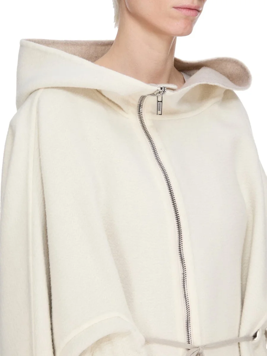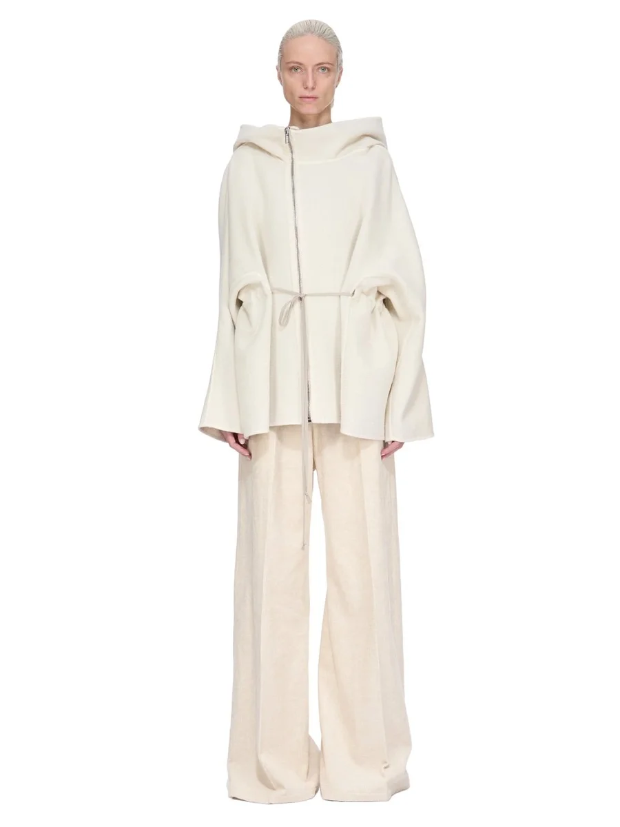 RICK OWENS FW25 CONCORDIANS ZIPFRONT HOODED JKT IN MILK/PEARL DOUBLE CAMEL