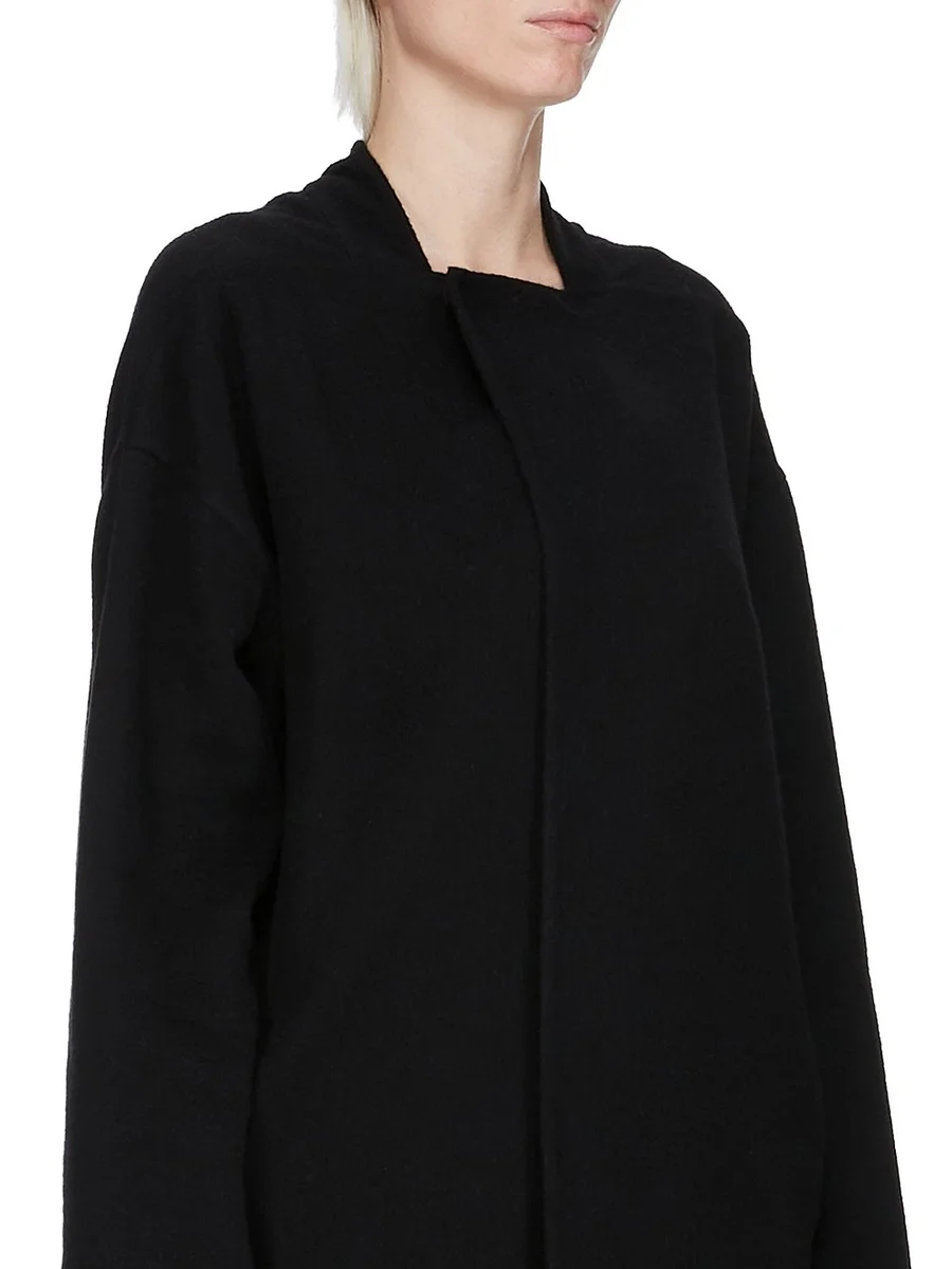 RICK OWENS FW25 CONCORDIANS ISLAND COAT IN BLACK DOUBLE CAMEL