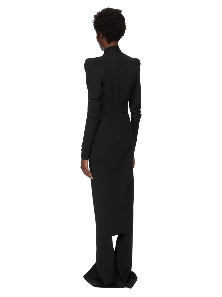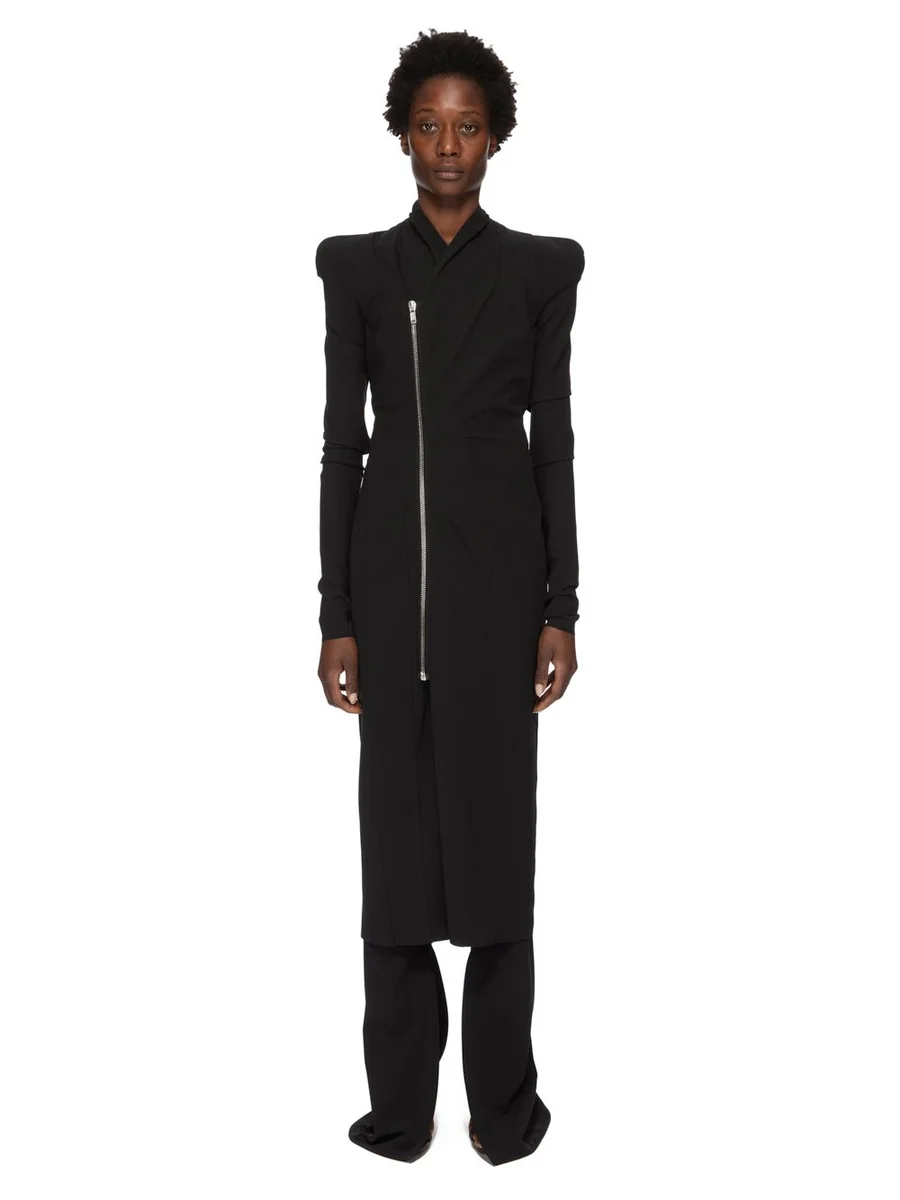 RICK OWENS FW25 CONCORDIANS PRINCESS COAT IN BLACK COMPACT STRETCH JERSEY