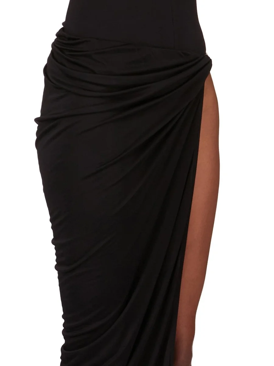 RICK OWENS FW25 CONCORDIANS HYDRA SKIRT IN BLACK SATIN VISCOSE JERSEY