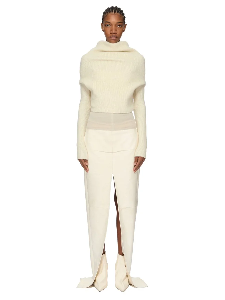 RICK OWENS FW25 CONCORDIANS RUNWAY TUBE TOP IN NATURAL LIGHTWEIGHT CASHMERE KNIT