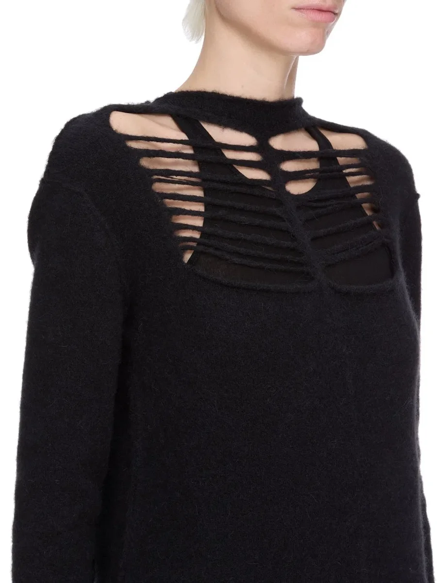 RICK OWENS FW25 CONCORDIANS LS TOP IN BLACKALPACA GRID KNIT