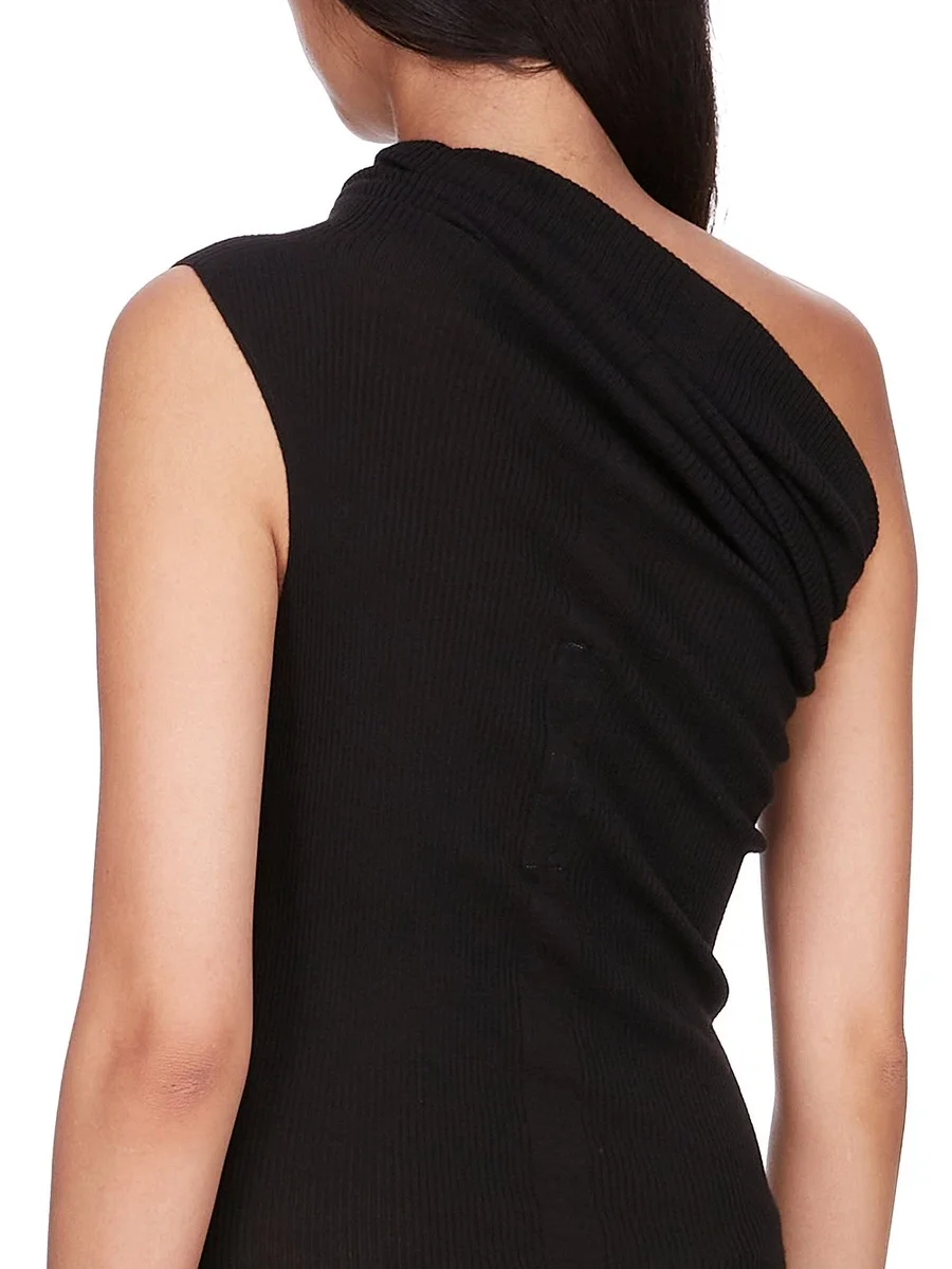 RICK OWENS FW25 CONCORDIANS ATHENA DRESS IN BLACK RIBBED KNIT