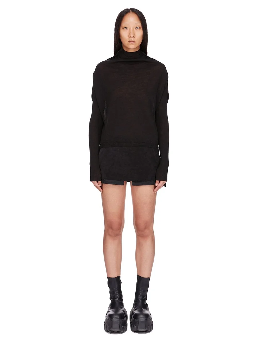 RICK OWENS FW25 CONCORDIANS CRATER KNIT IN BLACKLIGHTWEIGHT RASATO KNIT