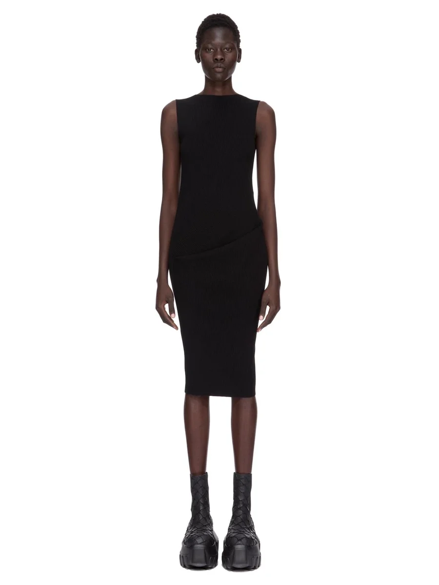 RICK OWENS FW25 CONCORDIANS SL BABEL DRESS IN BLACK RIBBED KNIT