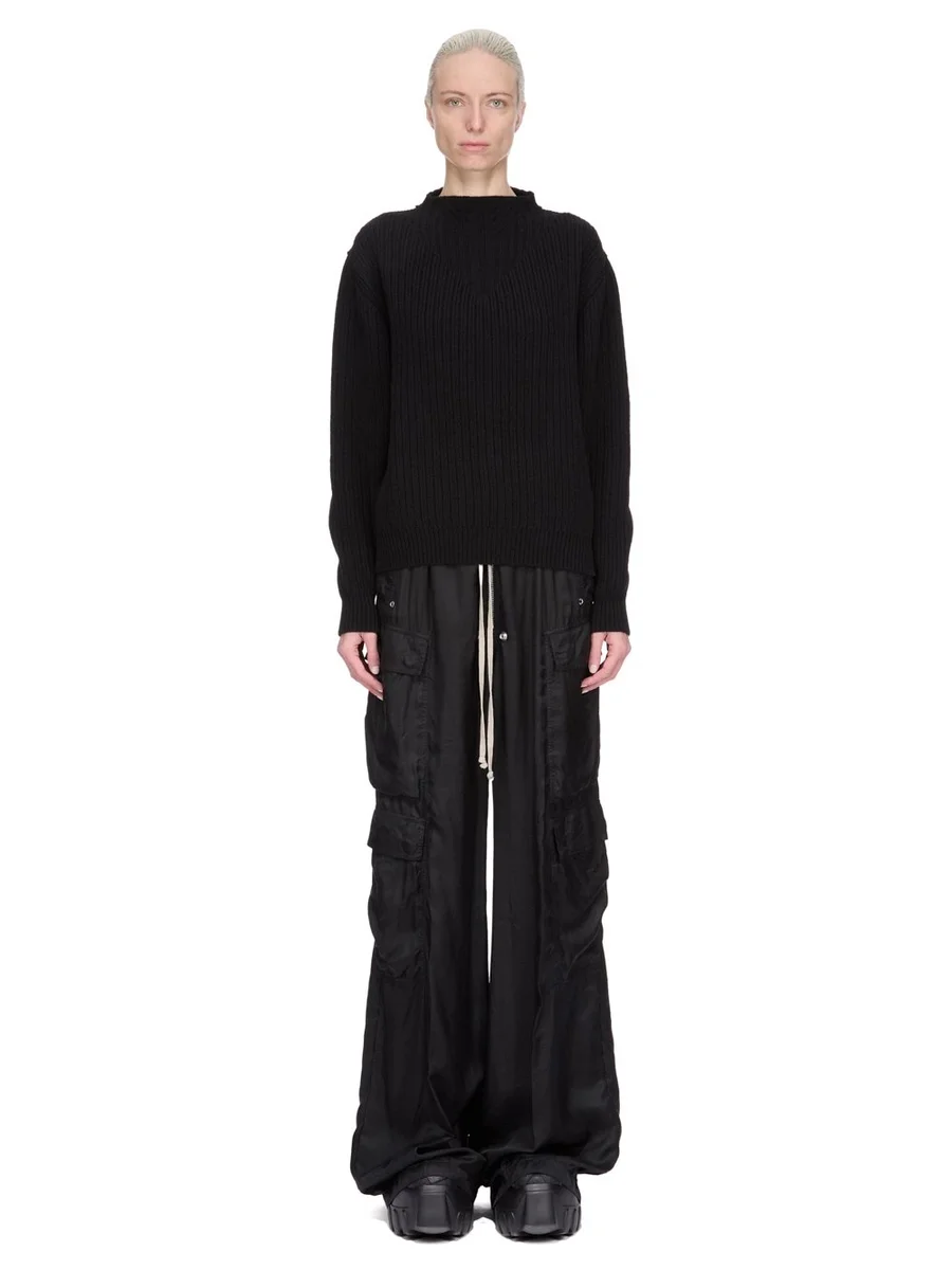 RICK OWENS FW25 CONCORDIANS AL PULL IN BLACK HEAVY WOOL KNIT