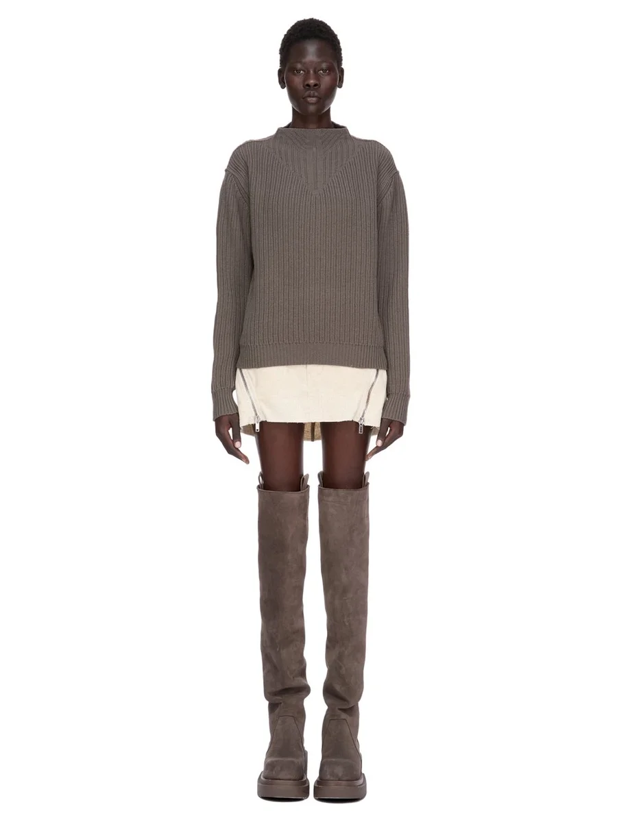 RICK OWENS FW25 CONCORDIANS AL PULL IN DUST HEAVY WOOL KNIT