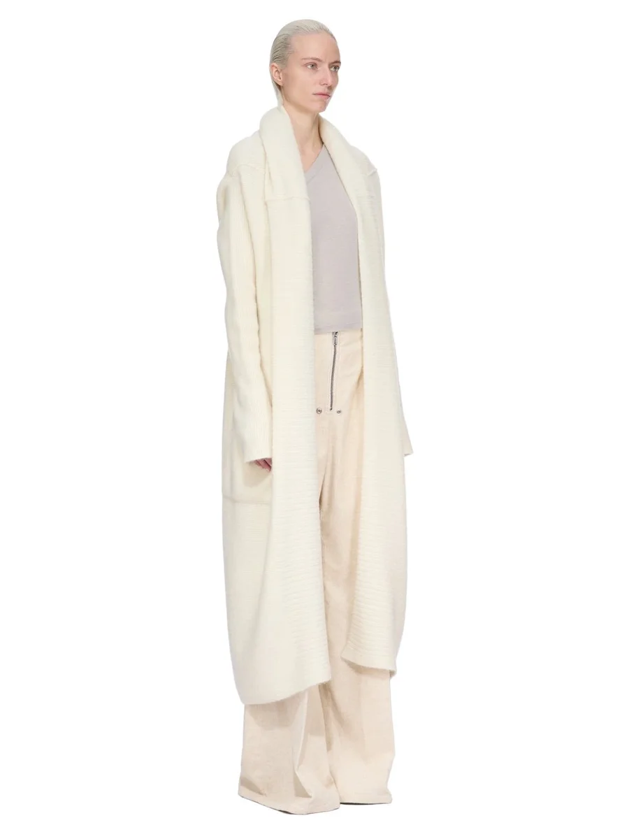 RICK OWENS FW25 CONCORDIANS LONG CARDIGAN IN MILK ALPACA KNIT
