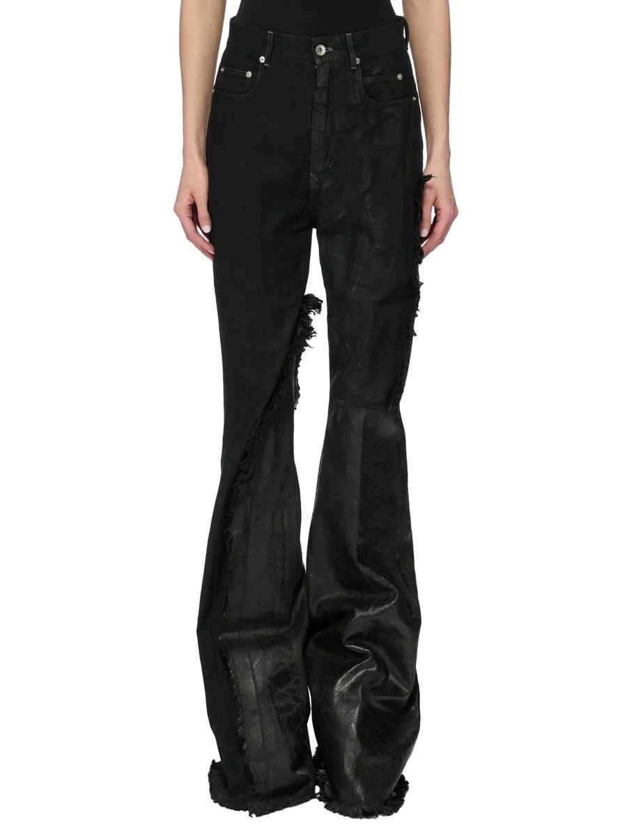RICK OWENS FW25 CONCORDIANS RUNWAY BOLAN BOOTCUT IN 13OZ BLACK MEGACRUST DENIM AND COTTON TELA