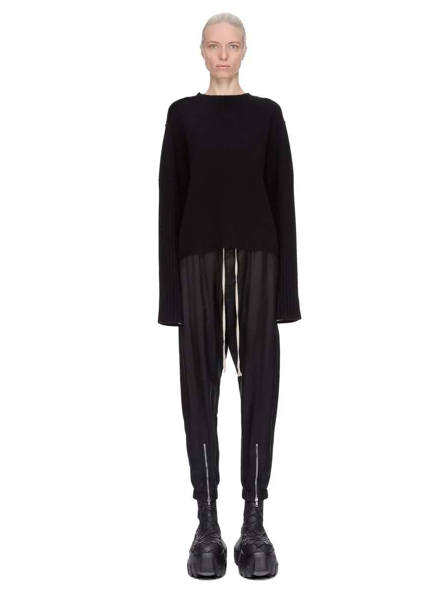 RICK OWENS FW25 CONCORDIANS TECUATL TRACK PANT IN BLACK CUPRO TWILL