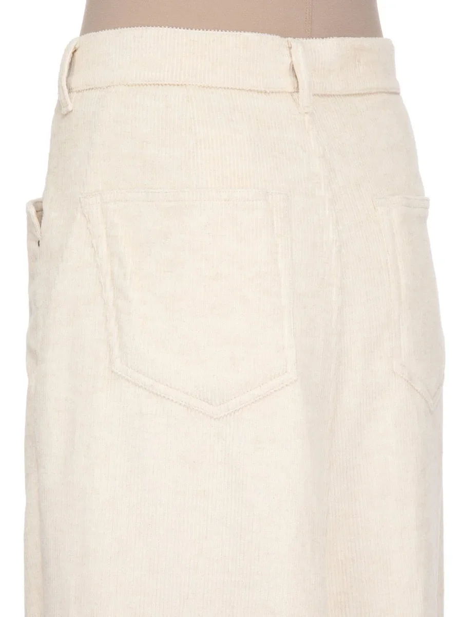 RICK OWENS FW25 CONCORDIANS LONG SLIVERED SKIRT IN NATURALLINEN CORDUROY