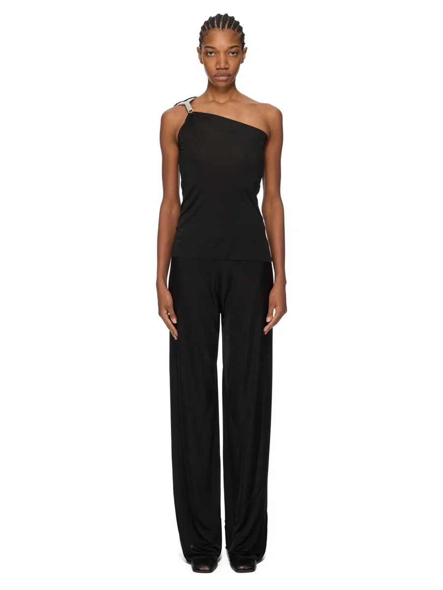 RICK OWENS FW25 CONCORDIANS BIAS PANTS IN BLACK SATIN VISCOSE JERSEY