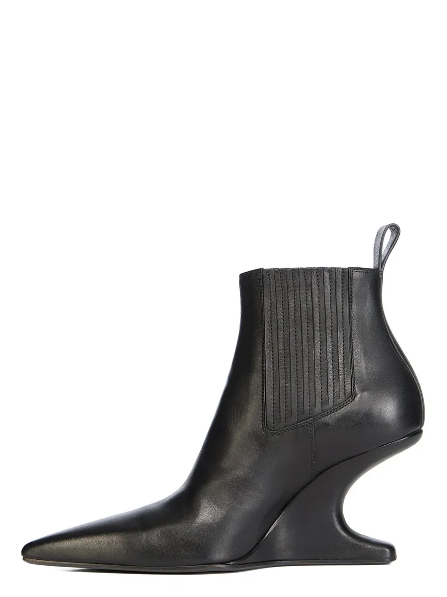 RICK OWENS FW25 CONCORDIANS RUNWAY ANKLE SHARP IN BLACK WASHED CALF LEATHER