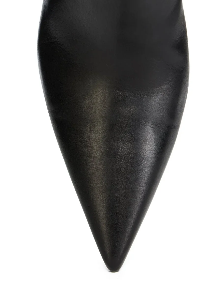 THESE ANKLE SHARP ARE JUST UNDER ANKLE HEIGHT. THEY FEATURE A LEATHER UPPER SLANTS SHARPLY INTO A FRONT POINT AT THE TOE. THEY FEATURE AN 8CM CANTILEVER HEEL, ELASTICIZED SIDE PANELS AND A BACK PULL TAB.