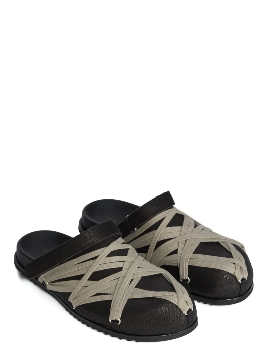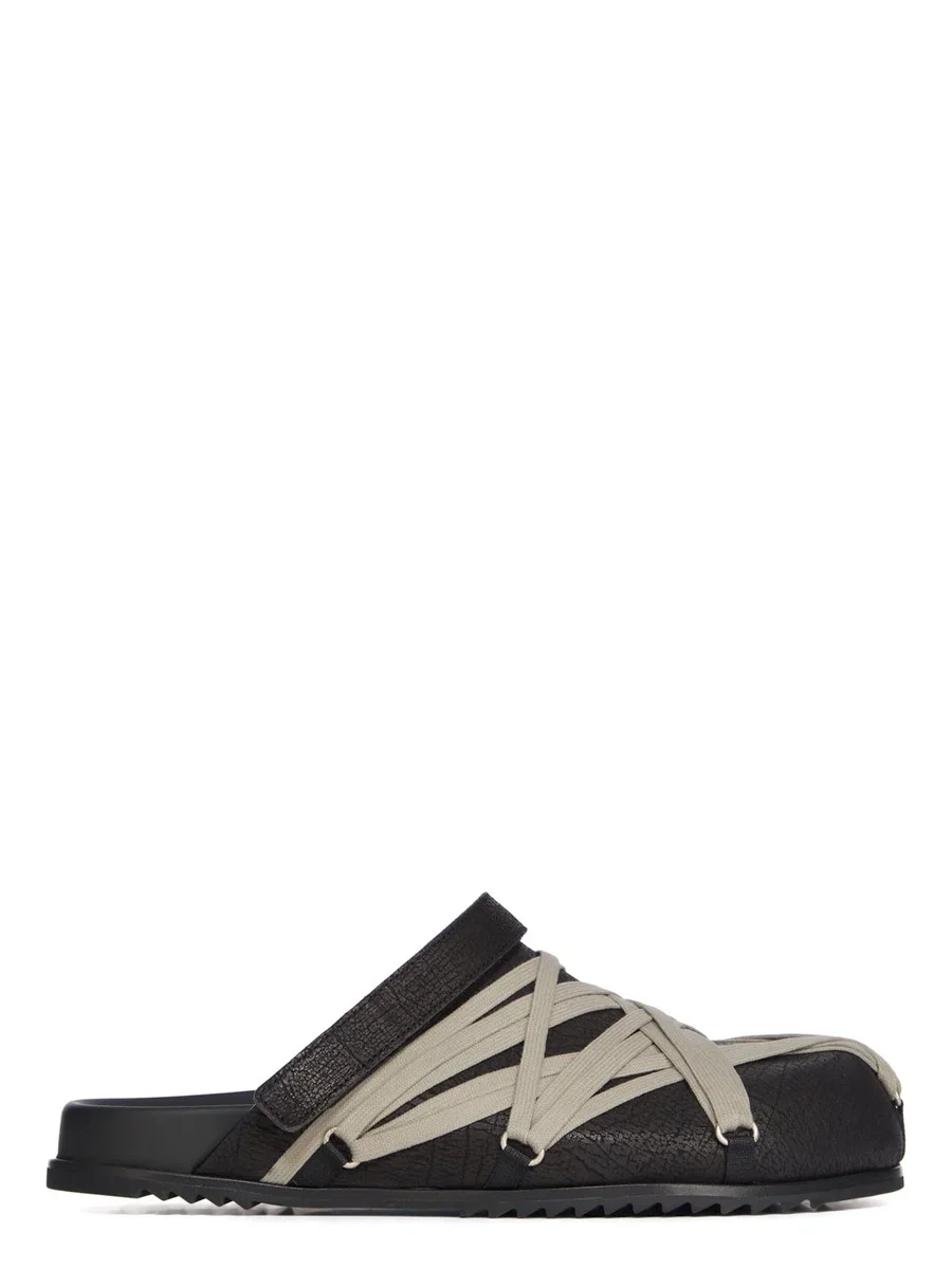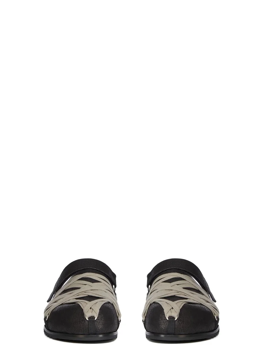RICK OWENS FW25 CONCORDIANS MULE GRANOLAS IN BLACK CRACKED CALF LEATHER