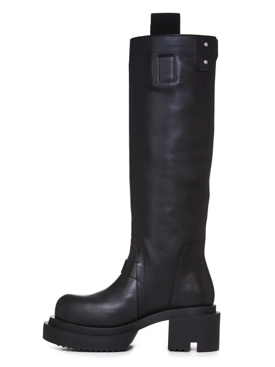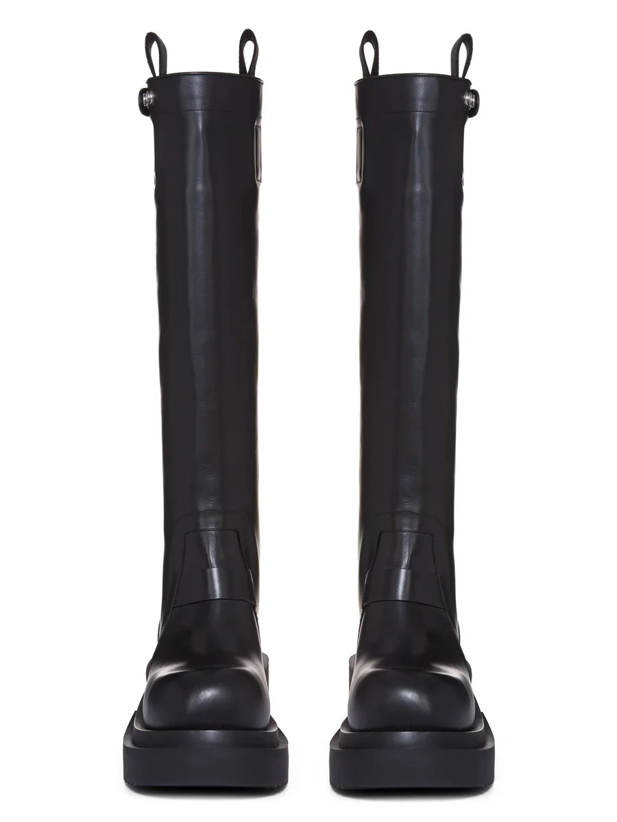 RICK OWENS FW25 CONCORDIANSKNEE PULL ON BOGUN BOOTS IN BLACK WASHED CALF LEATHER