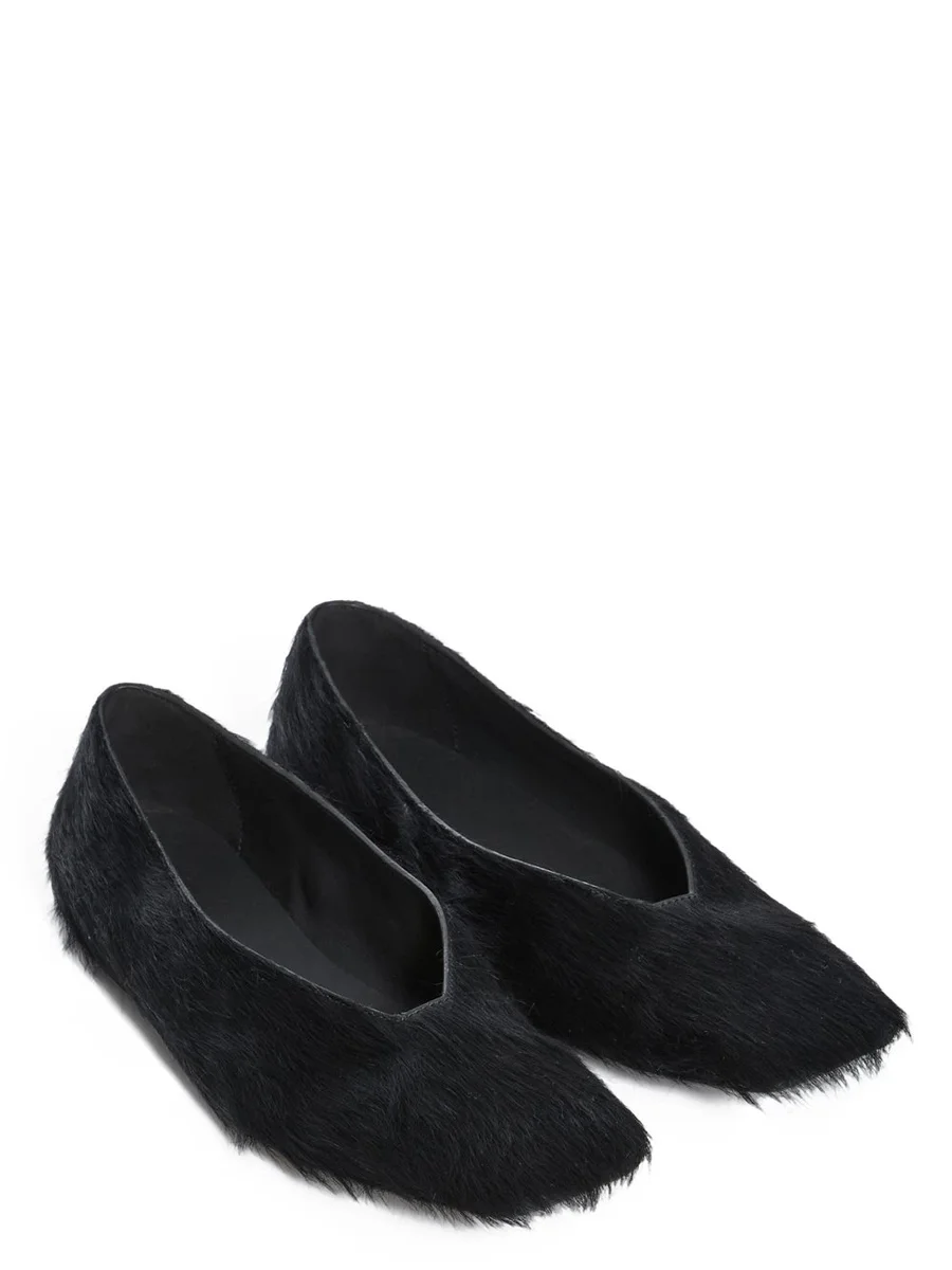 RICK OWENS FW25 CONCORDIANS BALLERINA IN BLACK UNSHAVED COW LEATHER