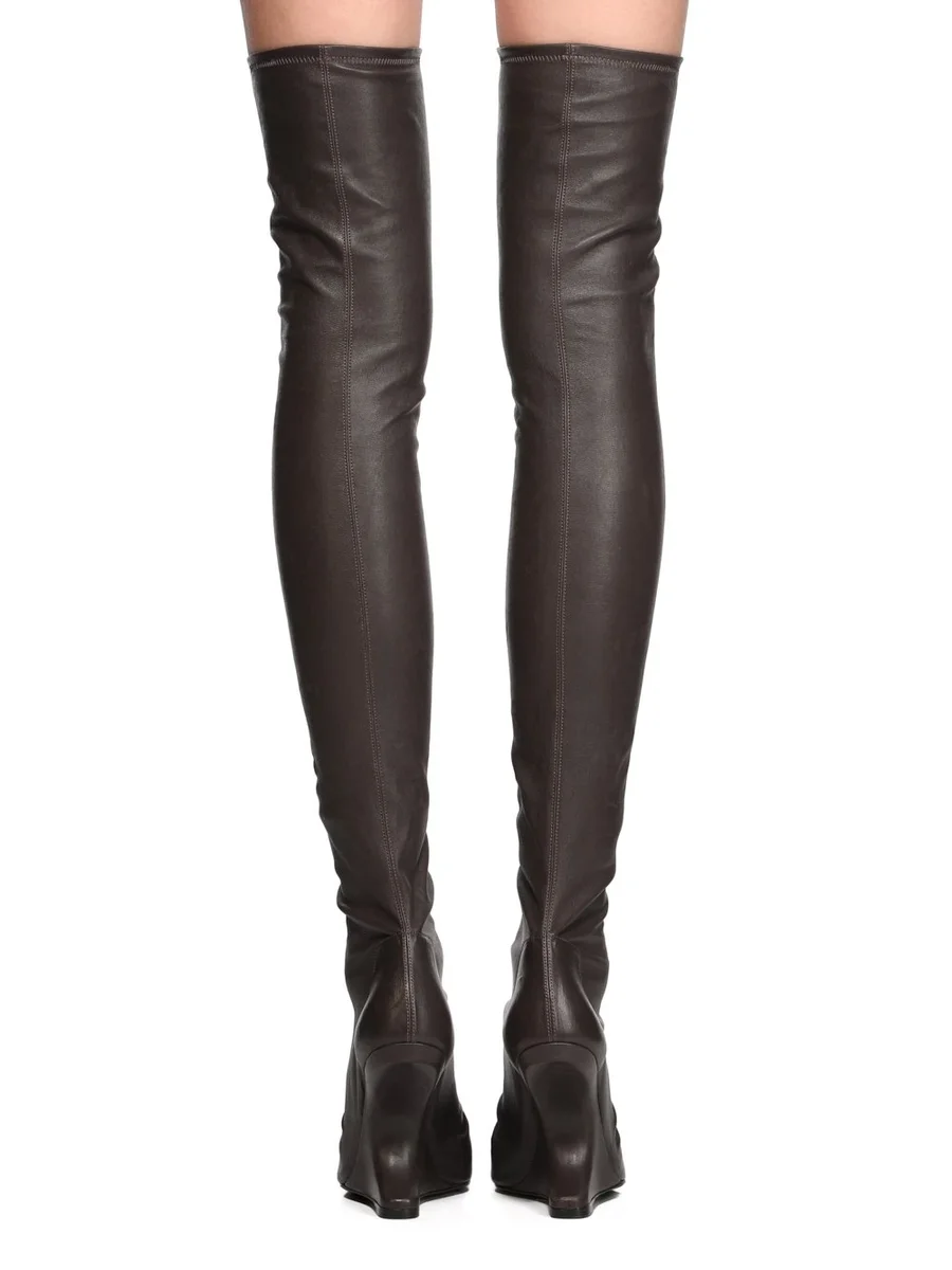 RICK OWENS FW25 CONCORDIANS CANTILEVER 11 THIGH HIGH IN DARKDUST STRETCH LAMB LEATHER