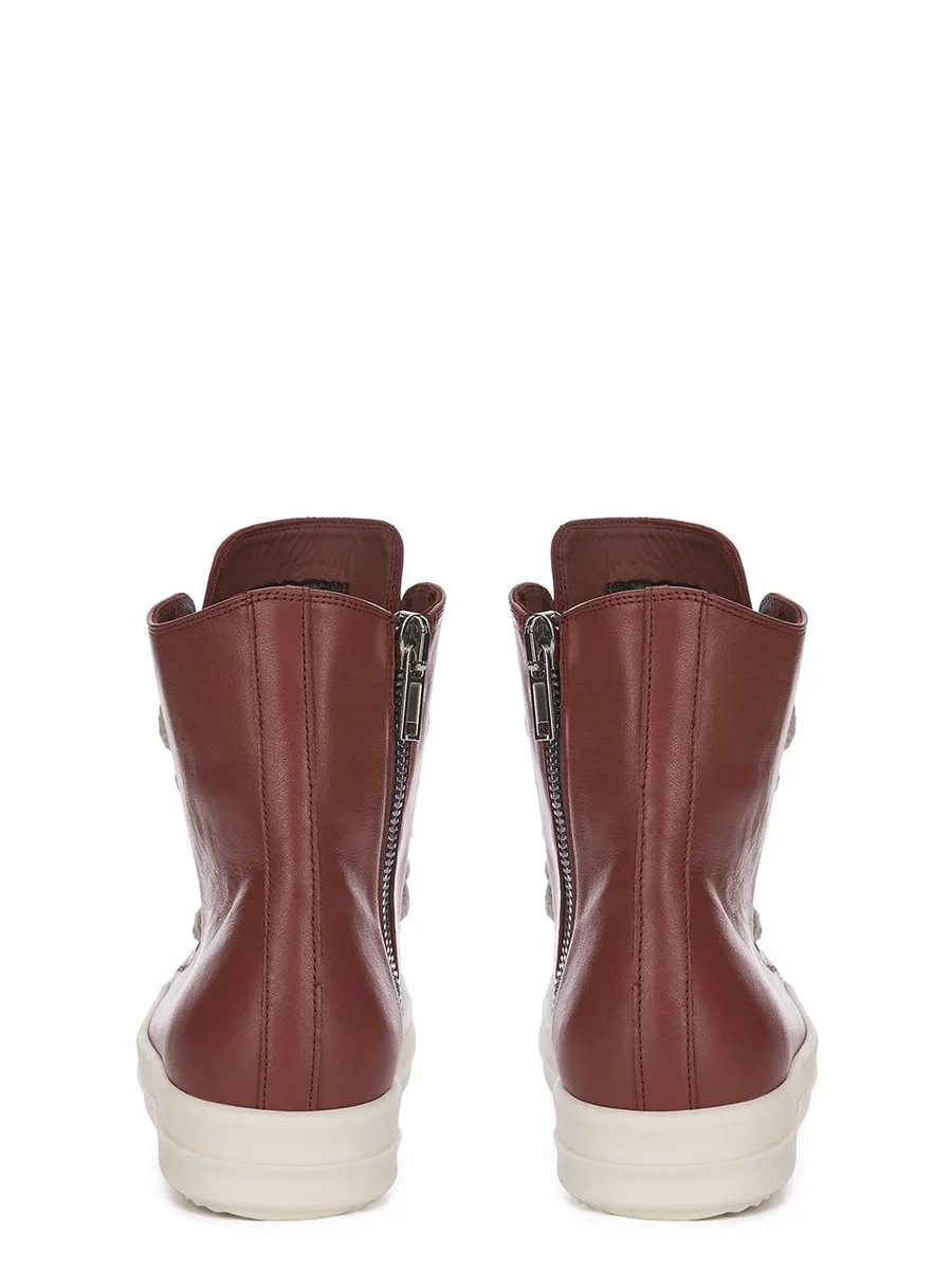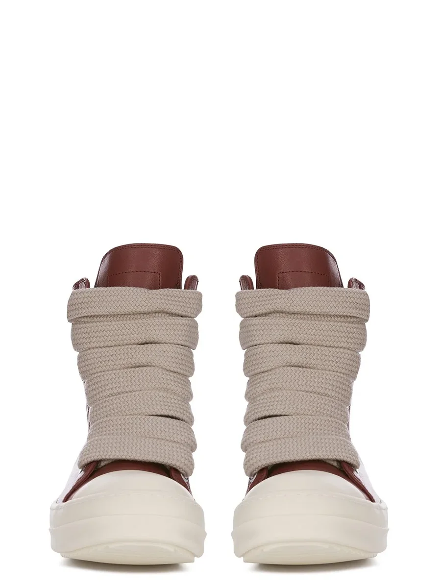 RICK OWENS FW25 CONCORDIANS JUMBOLACE SNEAKERS IN ROSEWOOD/MILK/MILK FULL GRAIN COW LEATHER