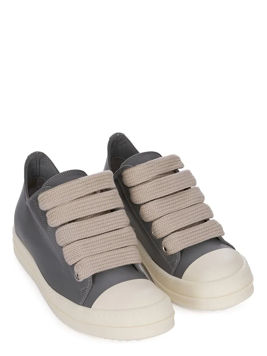 THESE JUMBOLACE LOW SNEAKS ARE UNDER ANKLE HEIGHT AND FEATURE EYELETS, JUMBO LACES, TOE CAPS AND SHARK-TOOTHED BUMPER SOLES.