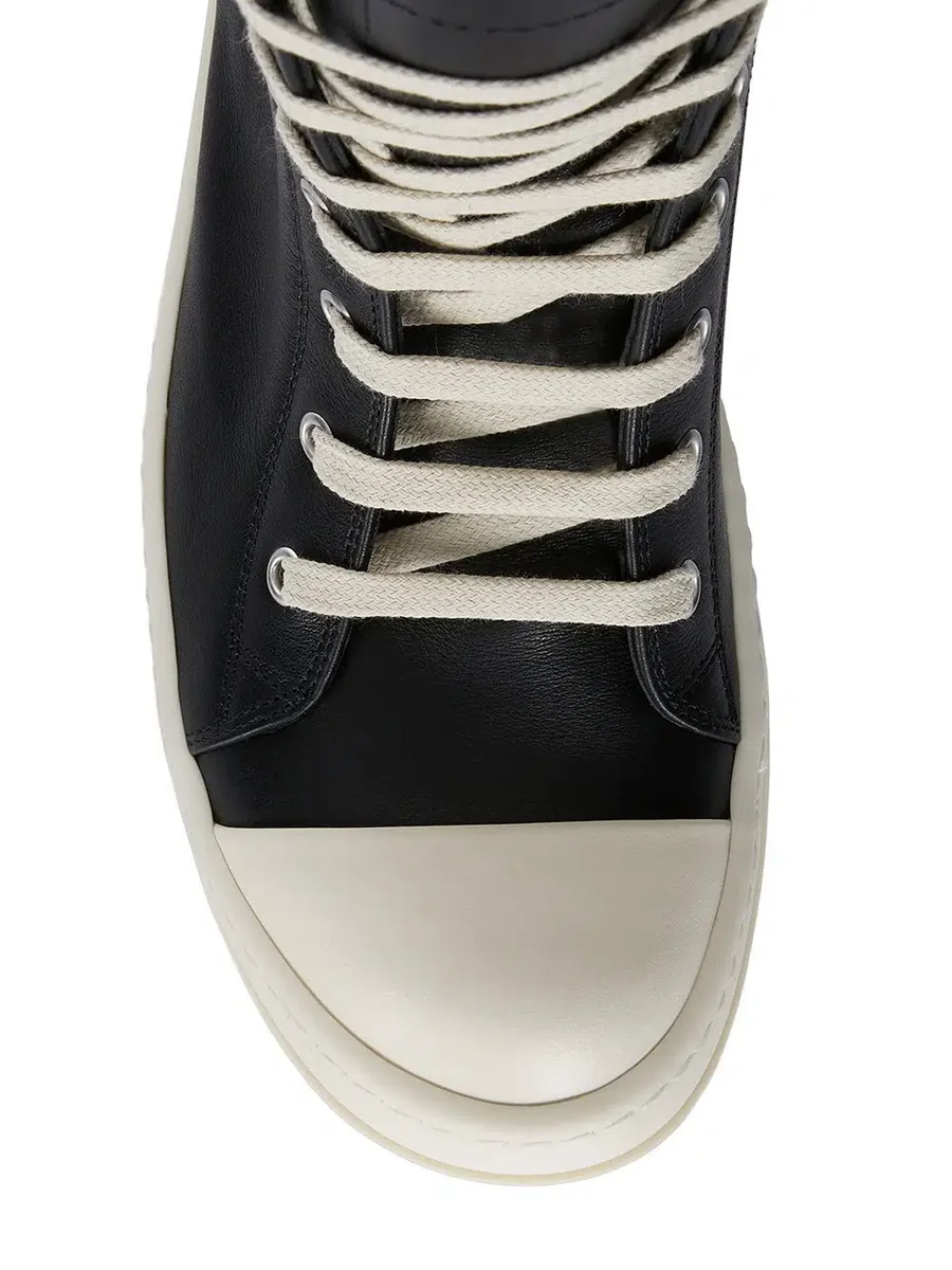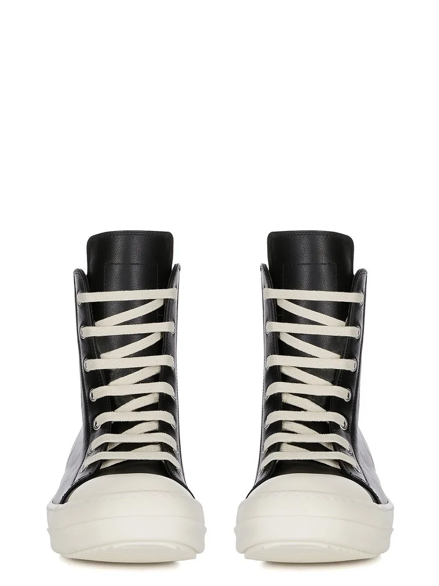 RICK OWENS FW25 CONCORDIANS SNEAKERS IN BLACK/MILK/MILK FULL GRAIN COW LEATHER