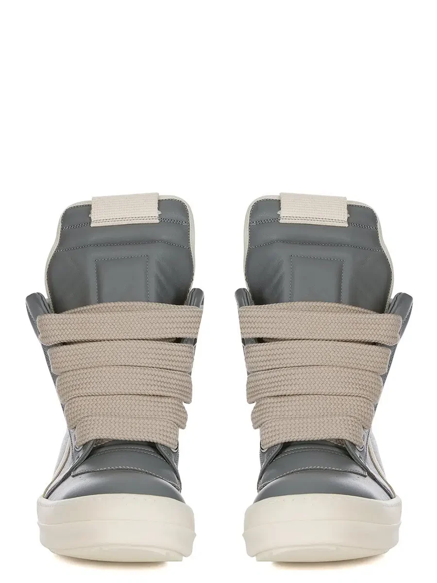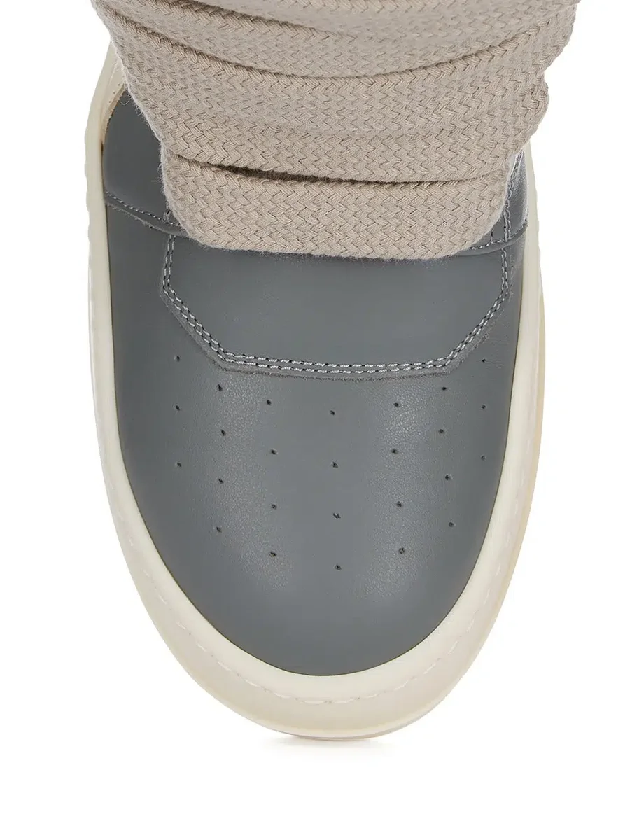 RICK OWENS FW25 CONCORDIANS JUMBOLACE GEOBASKET IN WASHED INDIGO/MILK/MILK FULL GRAIN COW LEATHER