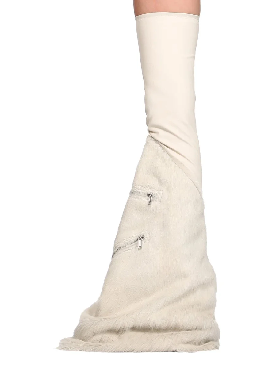 RICK OWENS FW25 CONCORDIANS CARGO FETISH SNEAKS IN MILK/MILK LAMB LEATHER AND UNSHAVED COW LEATHER