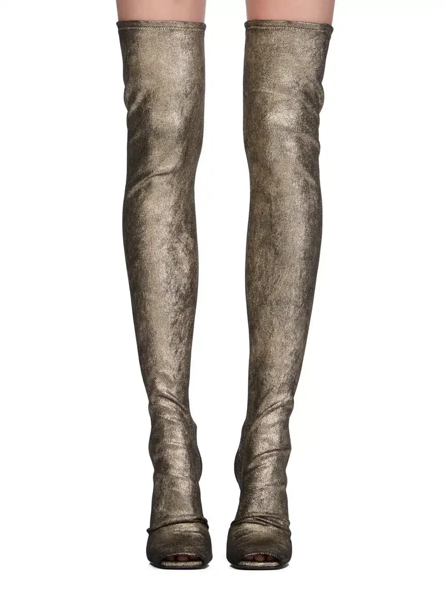 RICK OWENS FW25 CONCORDIANS CANTILEVER 11 BOOT IN GOLD METALLIC STRETCH LAMB LEATHER