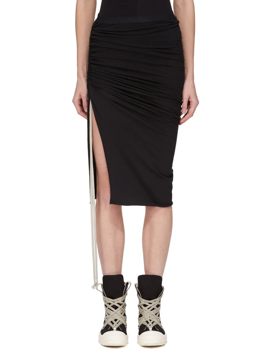 DRKSHDW FW25 CONCORDIANS SOFT EDFU SKIRT KNEE IN BLACK MEDIUM WEIGHT COTTON JERSEY