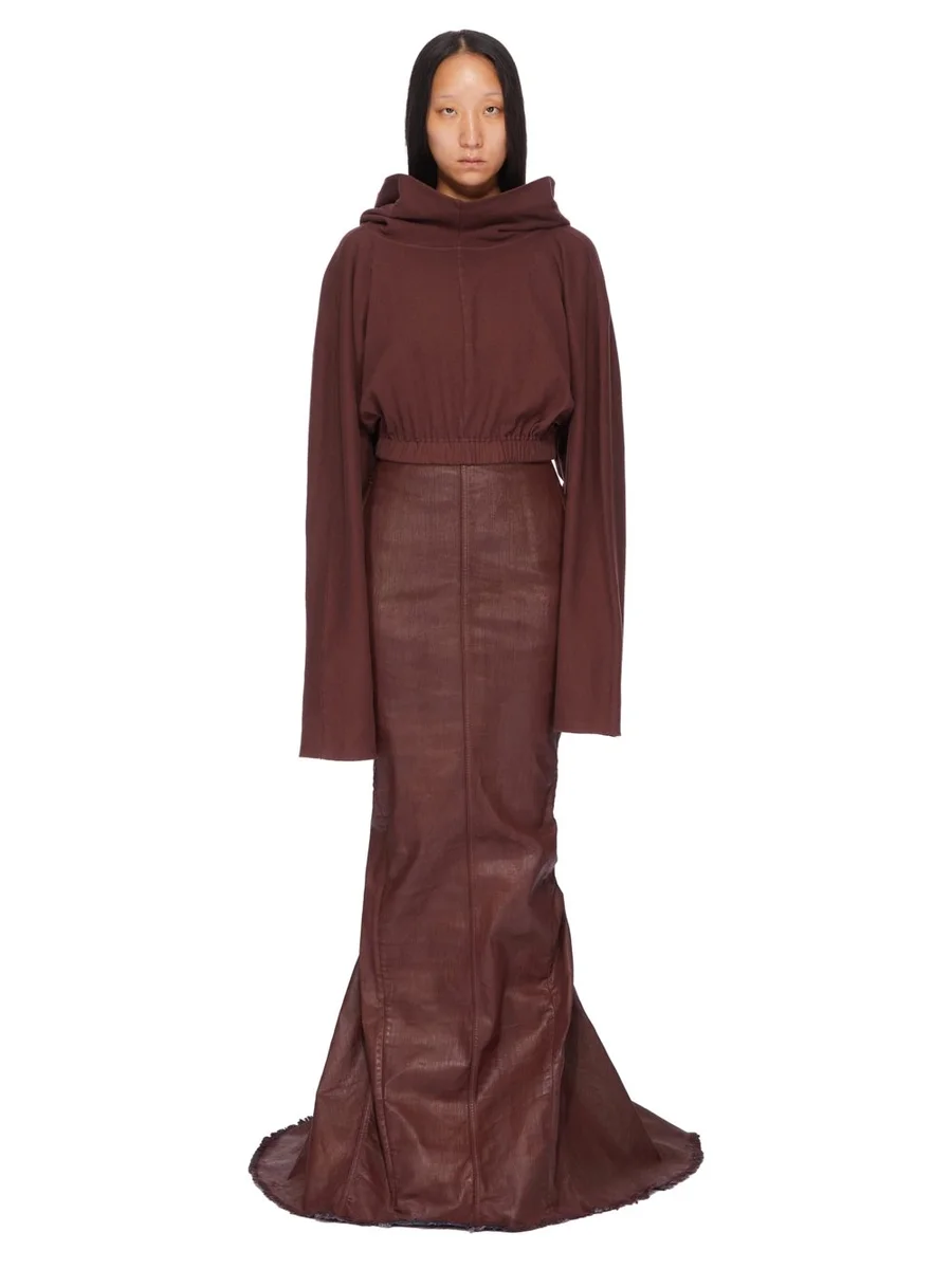 DRKSHDW FW25 CONCORDIANS LIDO SKIRT IN SCAB WAX STRETCH DENIM