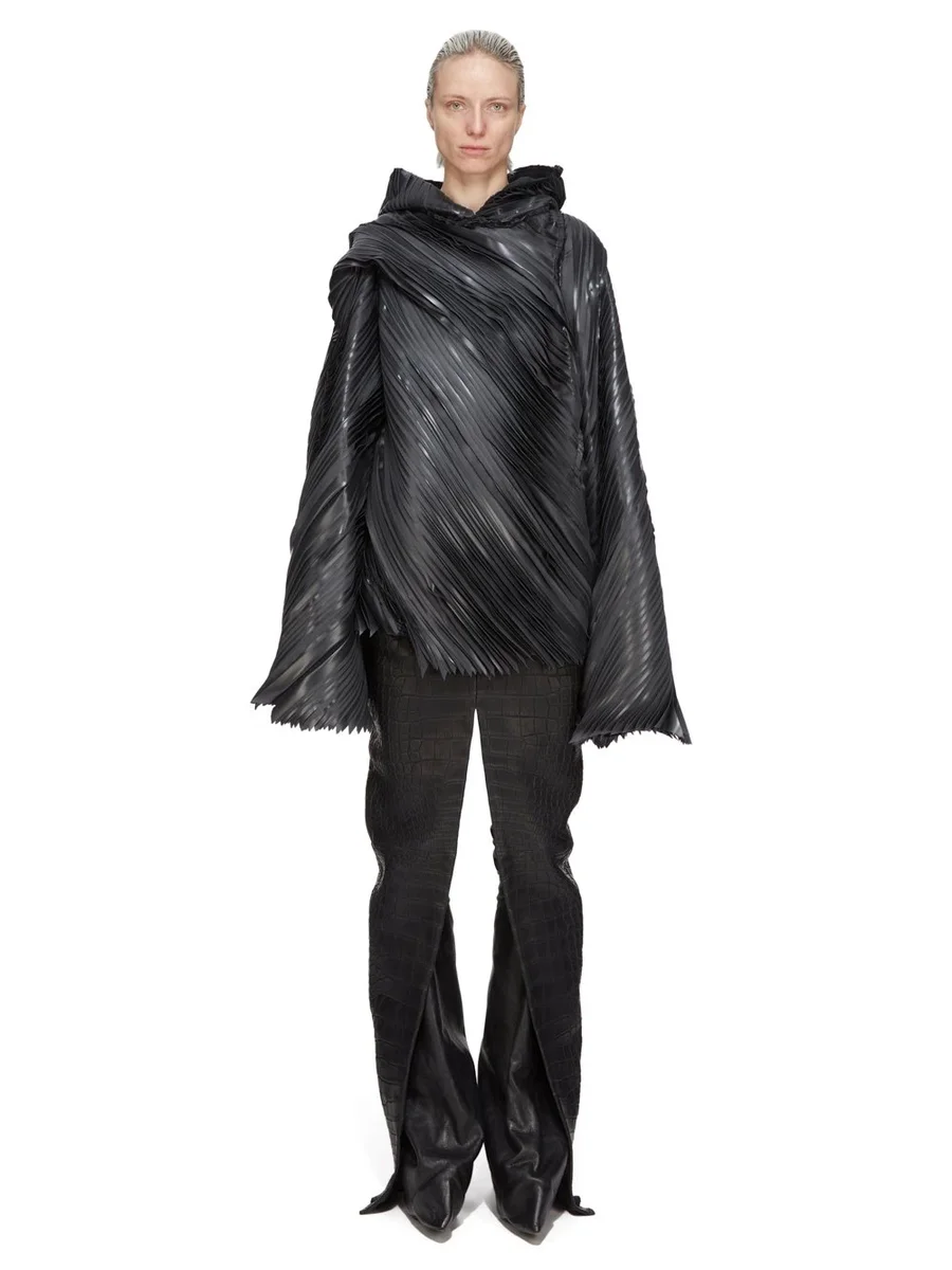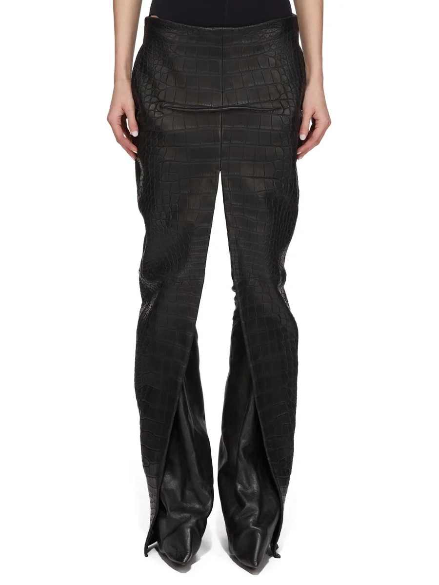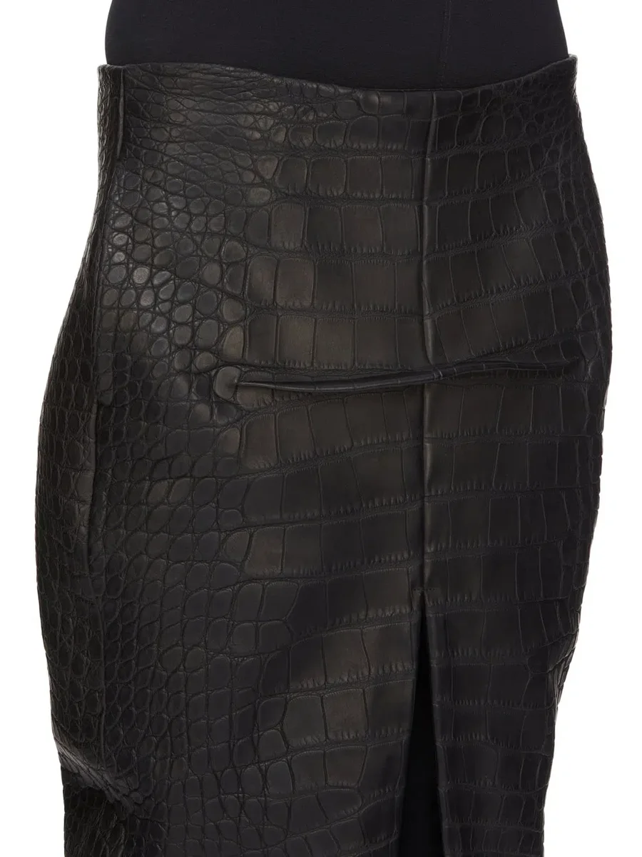 RICK OWENS FW25 CONCORDIANS RUNWAY SLICED SKIRT IN BLACK WAXY ALLIGATOR
