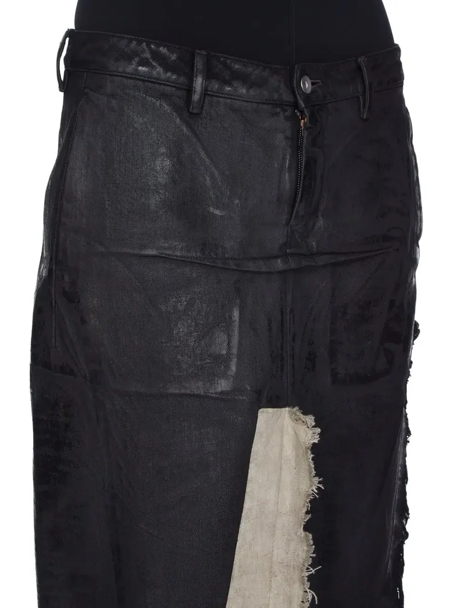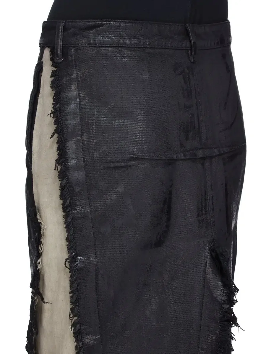 RICK OWENS FW25 CONCORDIANS RUNWAY DENIM SLICED SKIRT IN BLACK/NATURAL 13OZ BLACK MEGACRUST DENIM AND COTTON TELA