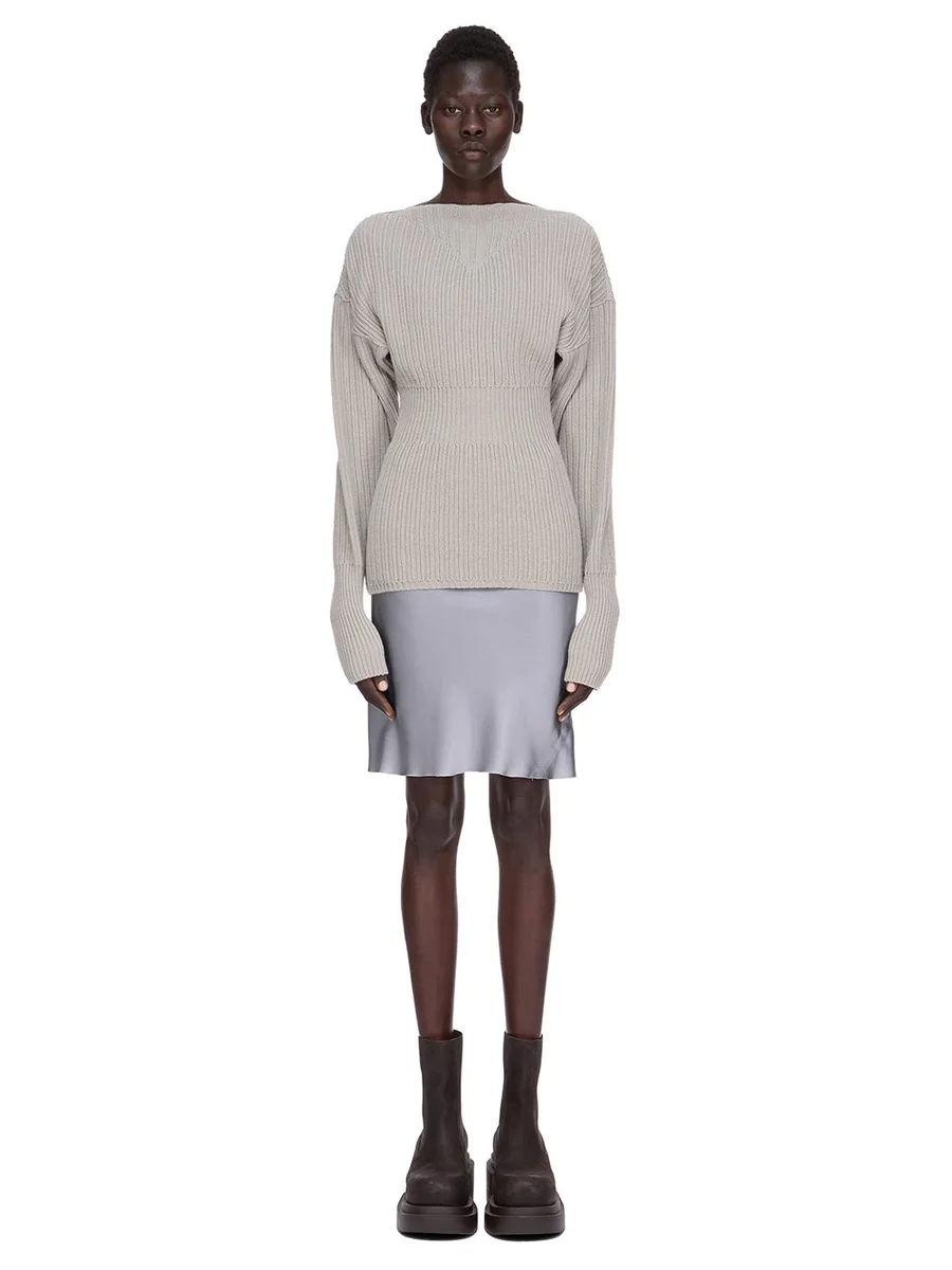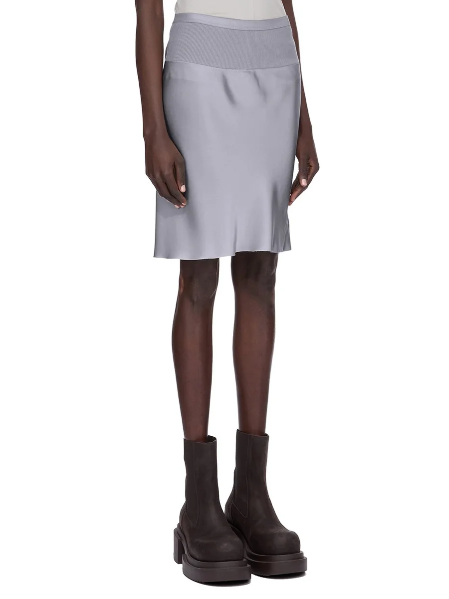 RICK OWENS FW25 CONCORDIANS SHORT BIAS SKIRT IN WASHED INDIGO WASHED CHARMEUSE
