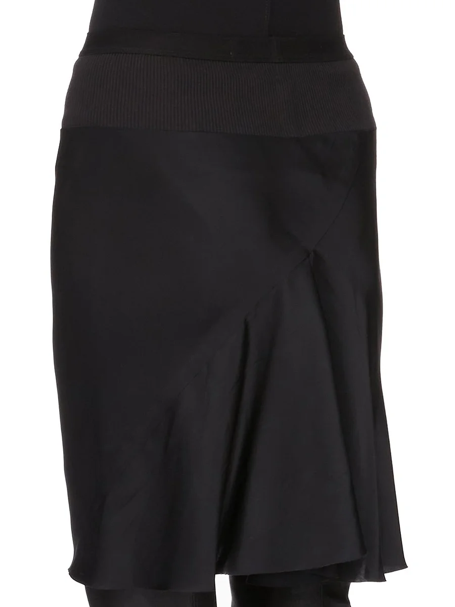 RICK OWENS FW25 CONCORDIANS SHORT BIAS SKIRT IN BLACK WASHED CHARMEUSE