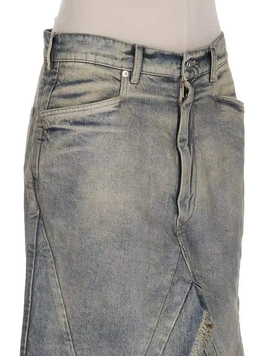 RICK OWENS FW25 CONCORDIANS LONG SLIVERED SKIRT IN DIRTY HUSTLER 14OZ HUSTLER SLUB DENIM