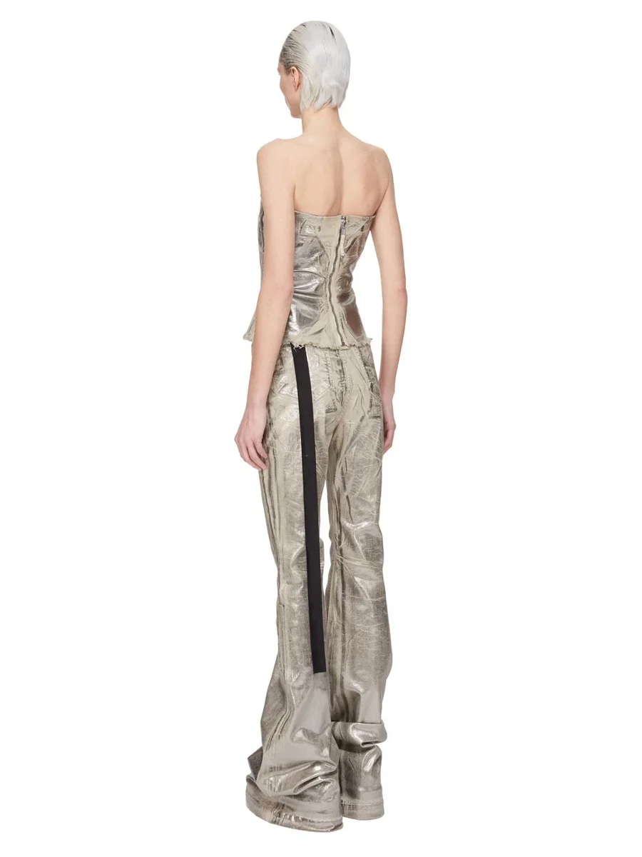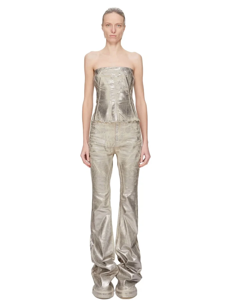 DRKSHDW FW25 CONCORDIANS BUSTIER TOP IN PALLADIUM FOIL STRETCH DENIM