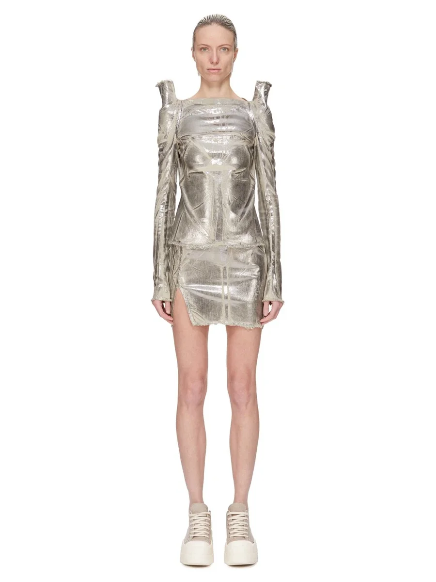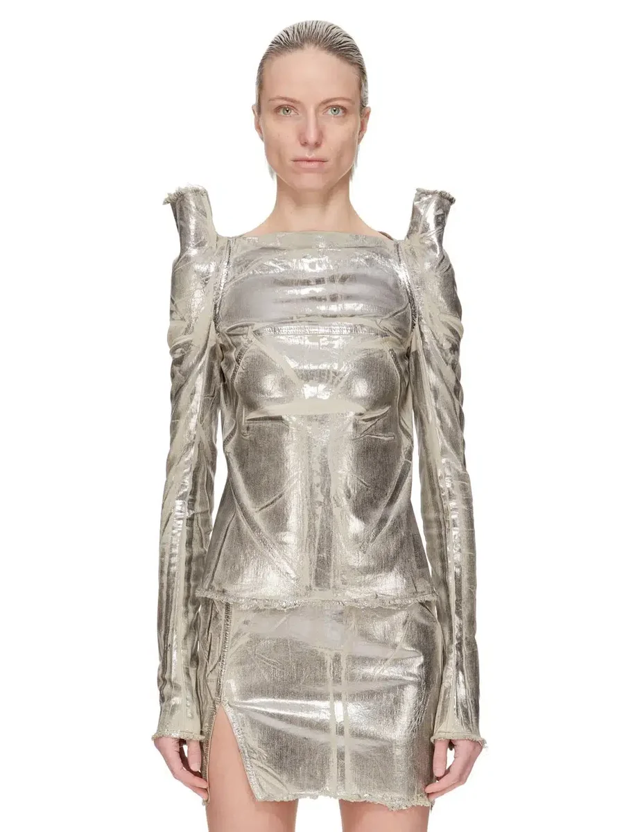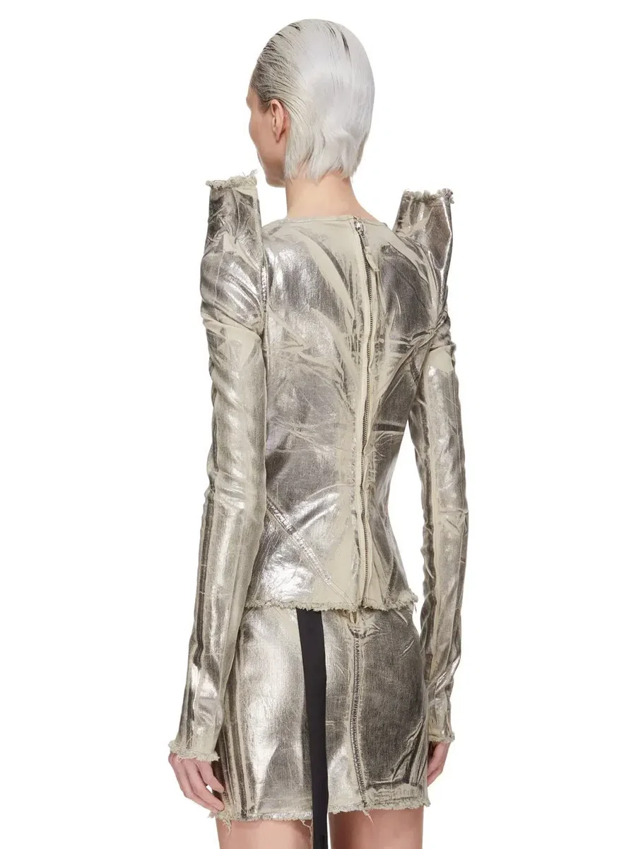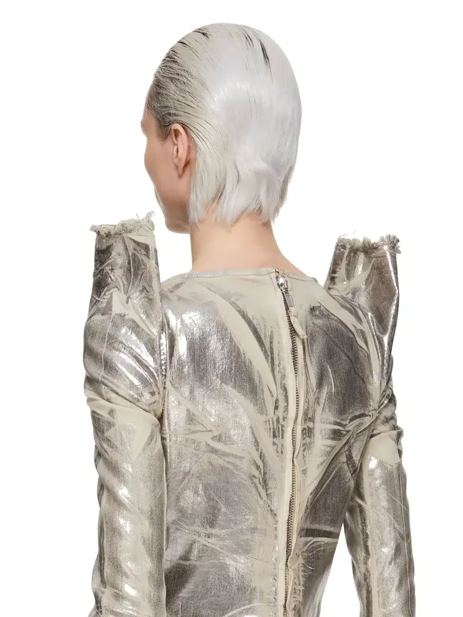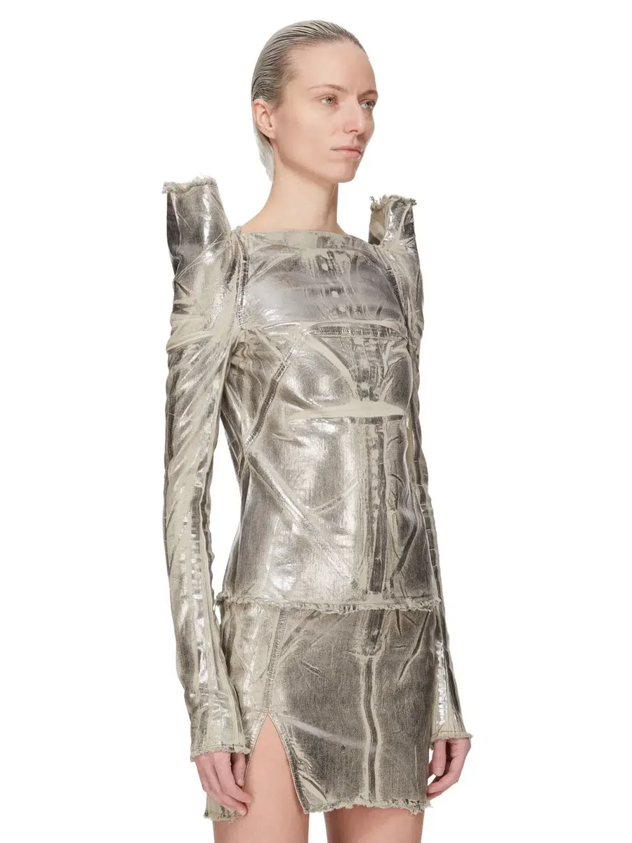 DRKSHDW FW25 CONCORDIANS TEC TOP IN PALLADIUM FOIL STRETCH DENIM