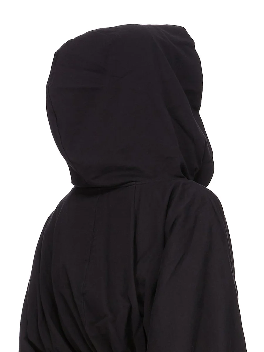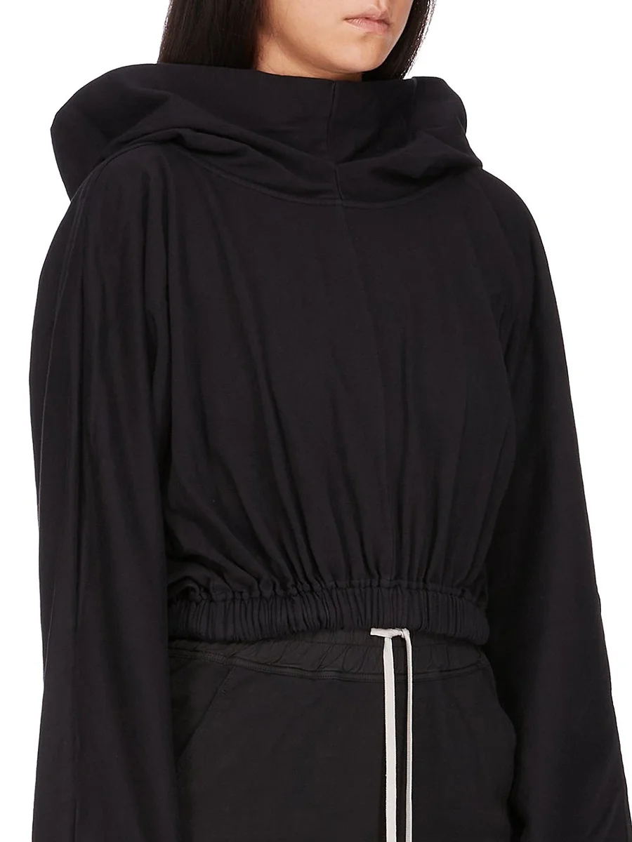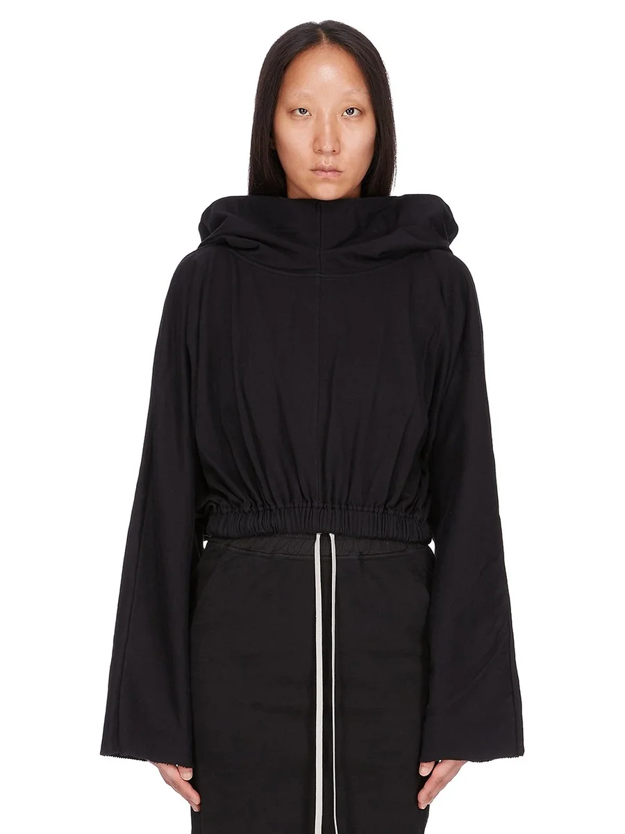 DRKSHDW FW25 CONCORDIANS CROPPED HOODED TUNIC IN BLACK COMPACT HEAVY JERSEY