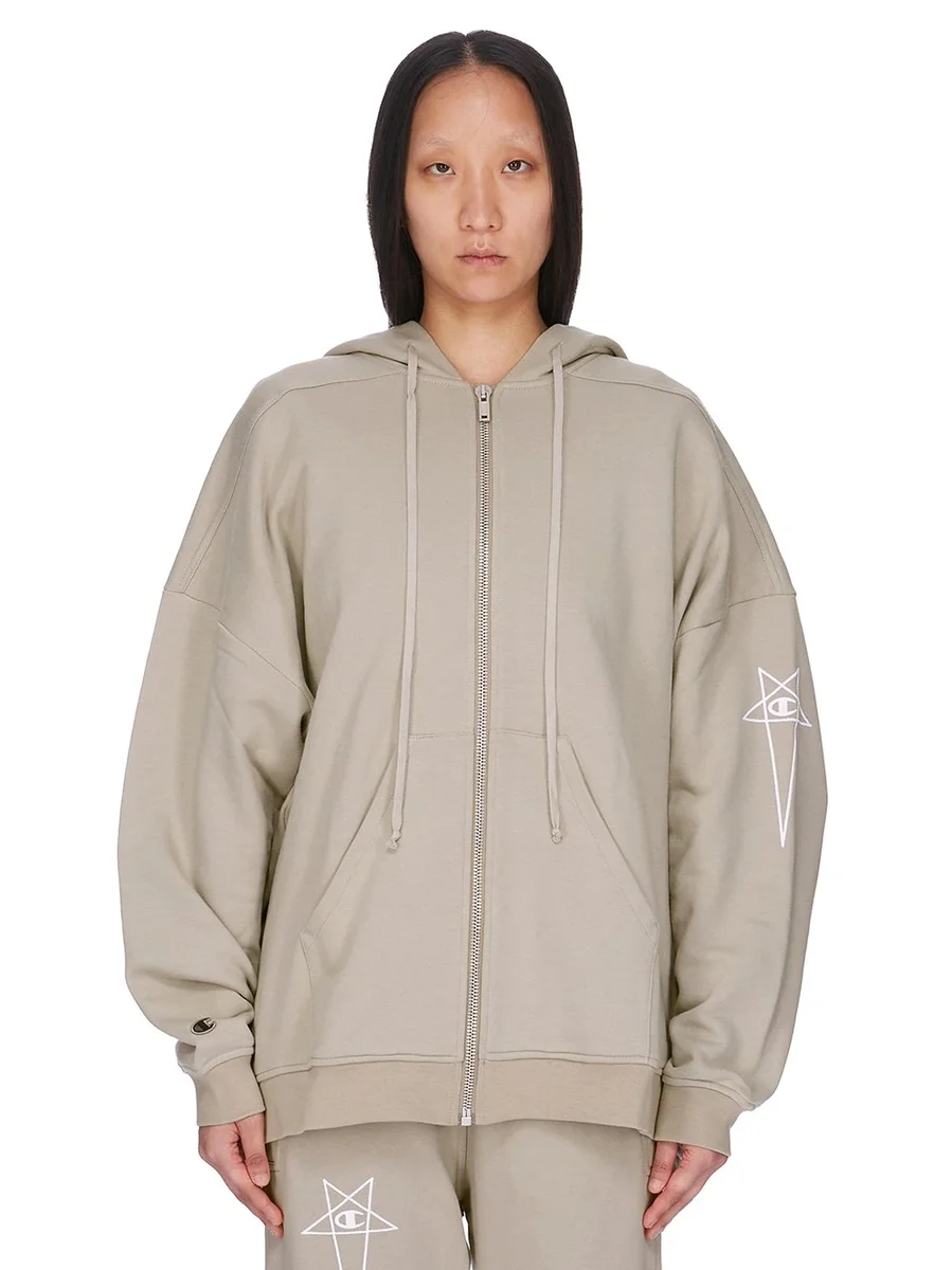 CHAMPION X RICK OWENS SS25 JUMBO JASON’S HOODIE IN PEARL COMPACT FELPA JERSEY