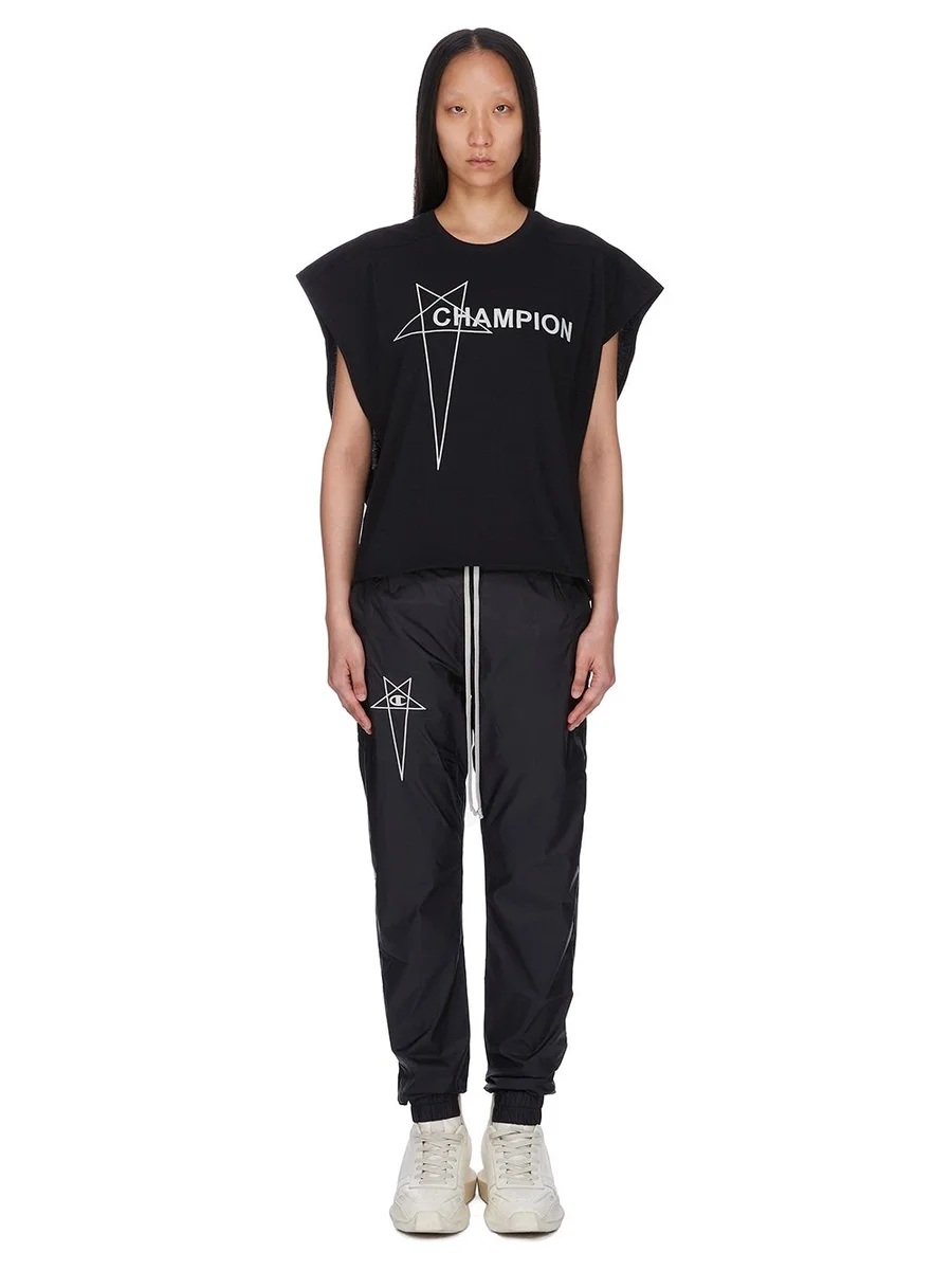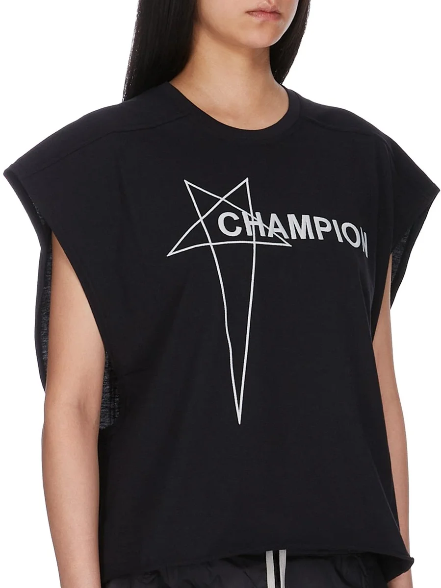 CHAMPION X RICK OWENS SS25 MICRO TATLIN T IN BLACK COTTON JERSEY