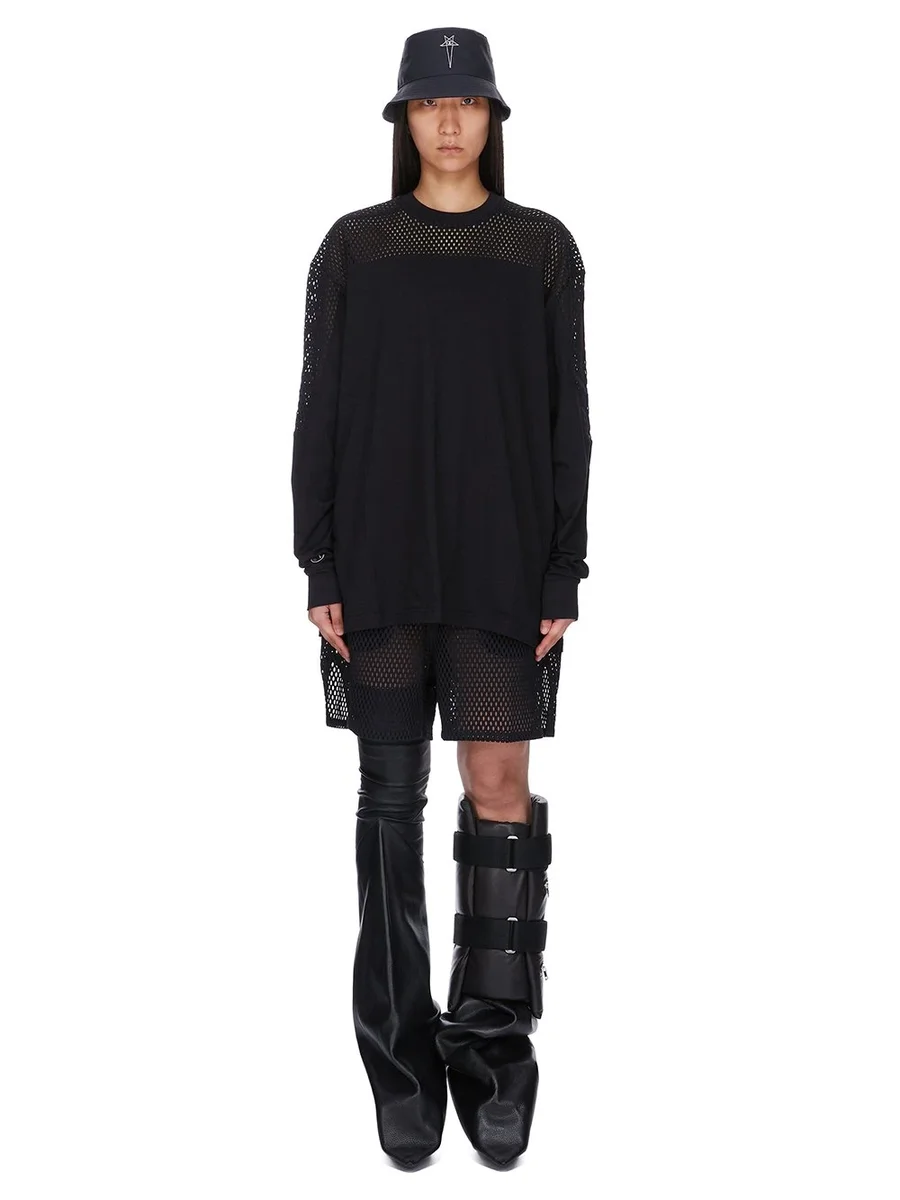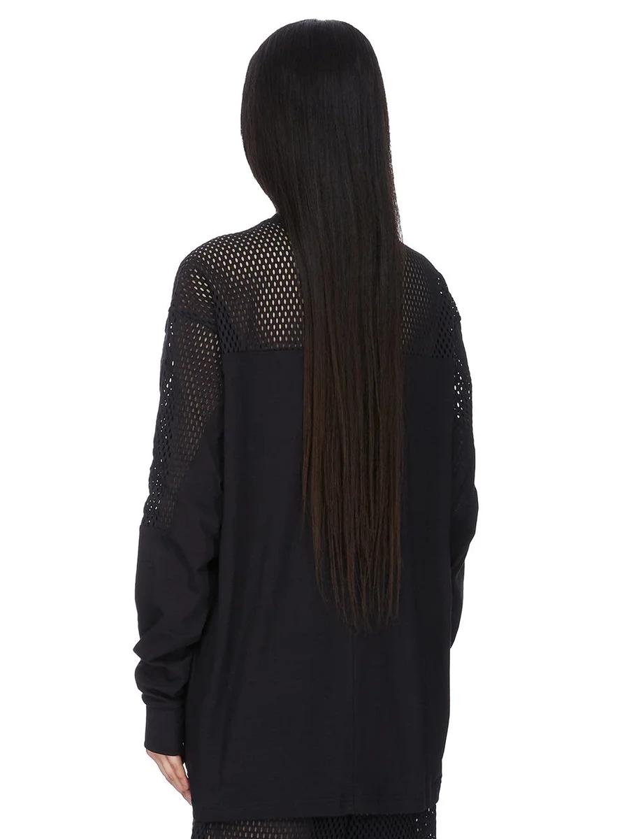 CHAMPION X RICK OWENS SS25 GIRDERED T IN BLACK COTTON JERSEY AND OPEN MESH JERSEY