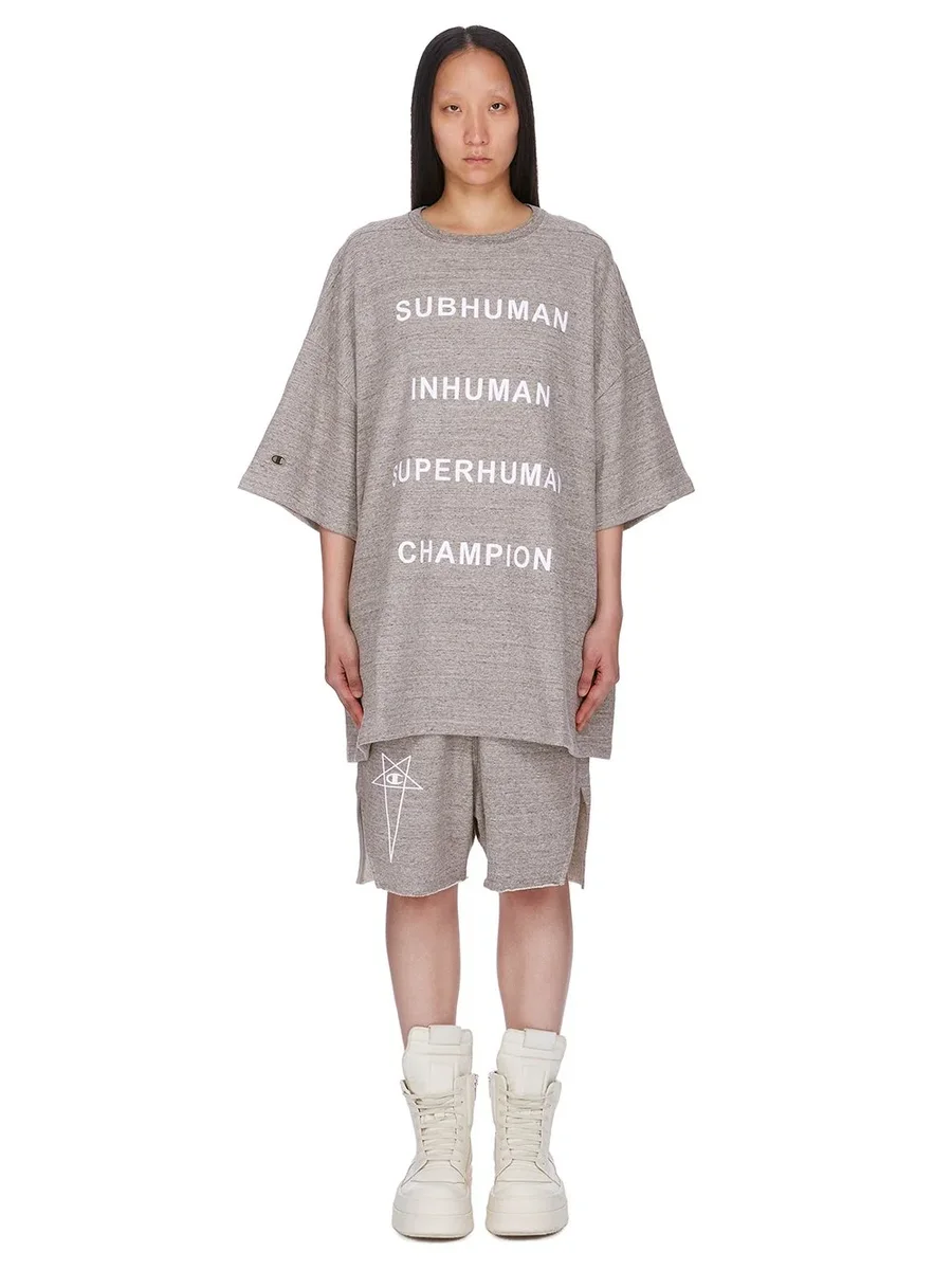 CHAMPION X RICK OWENS SS25 TOMMY T IN GREY MELANGE MELANGE FELPA JERSEY
