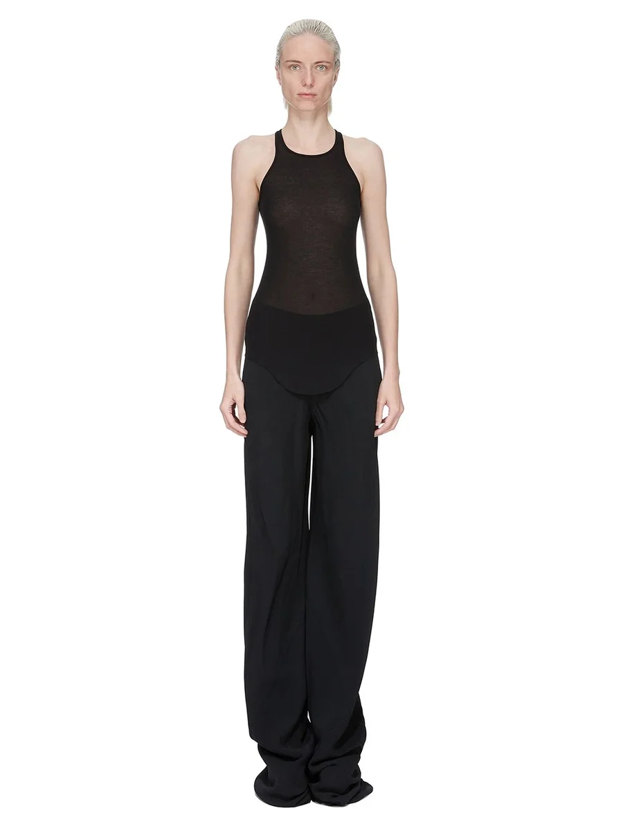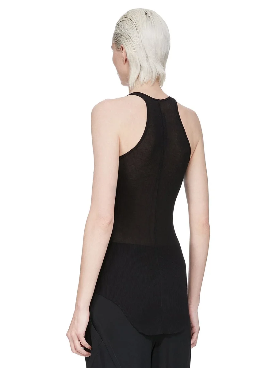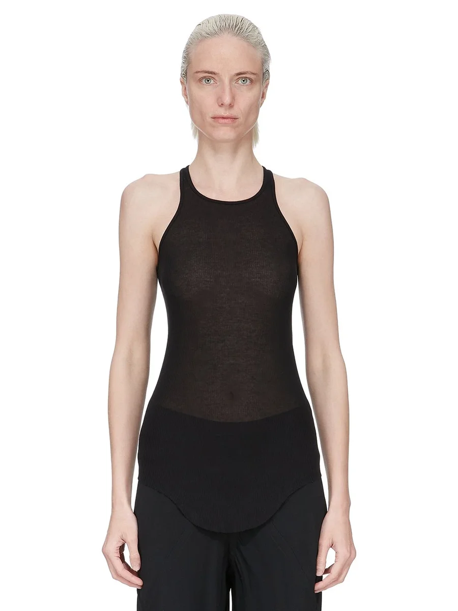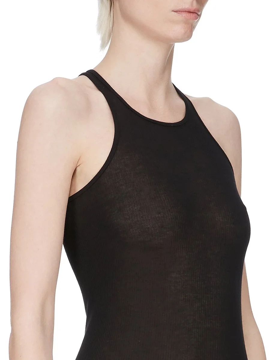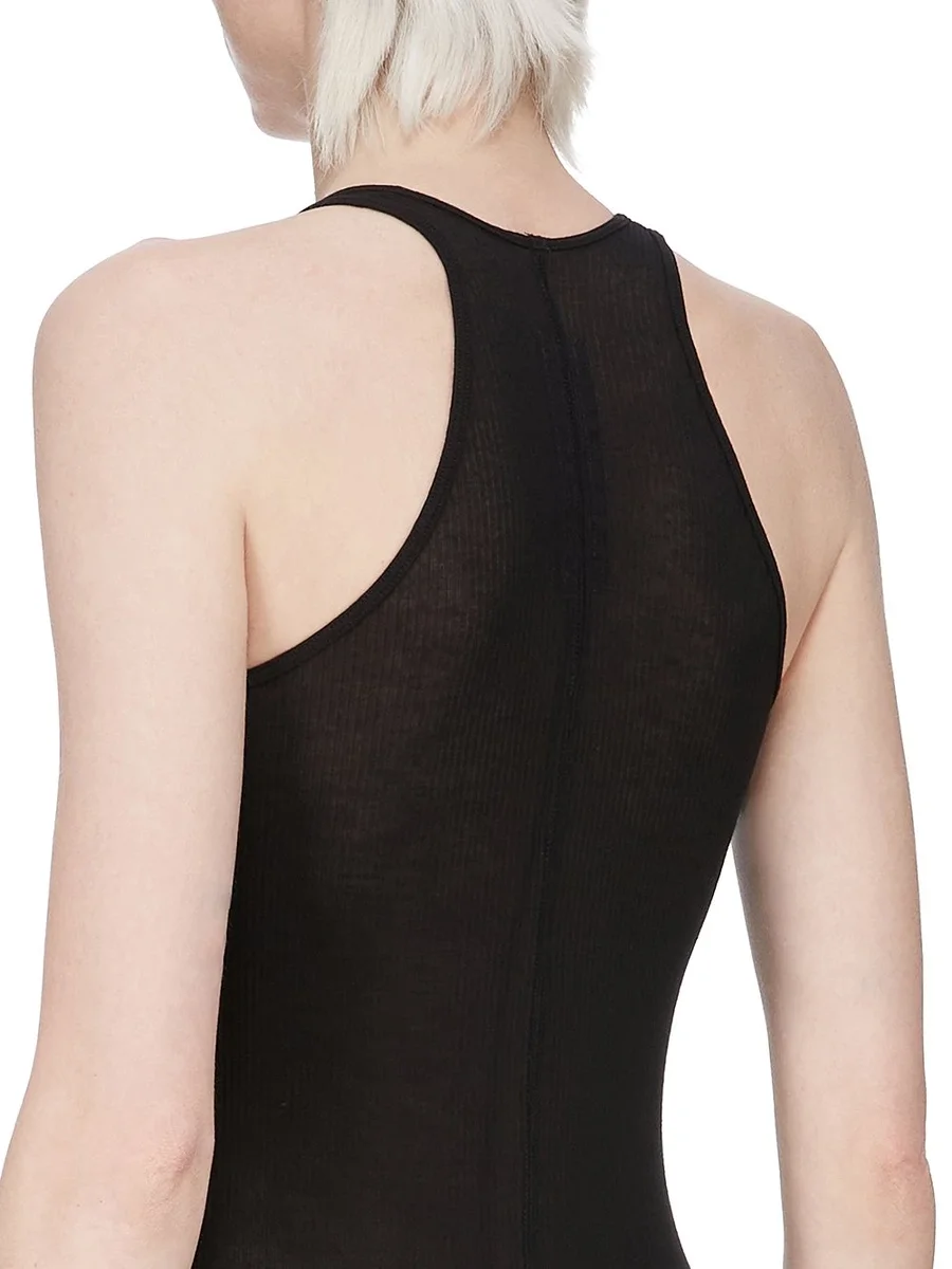 RICK OWENS FOREVER BASIC RIB TANK IN BLACK VISCOSE SILK RIB JERSEY
