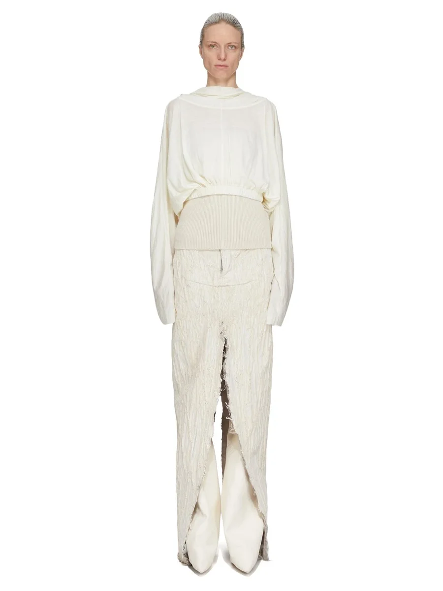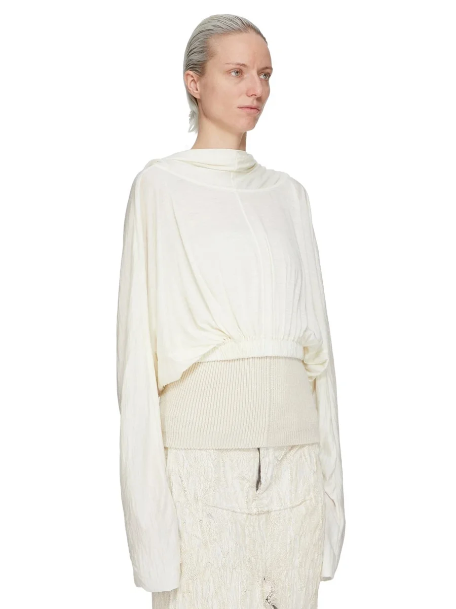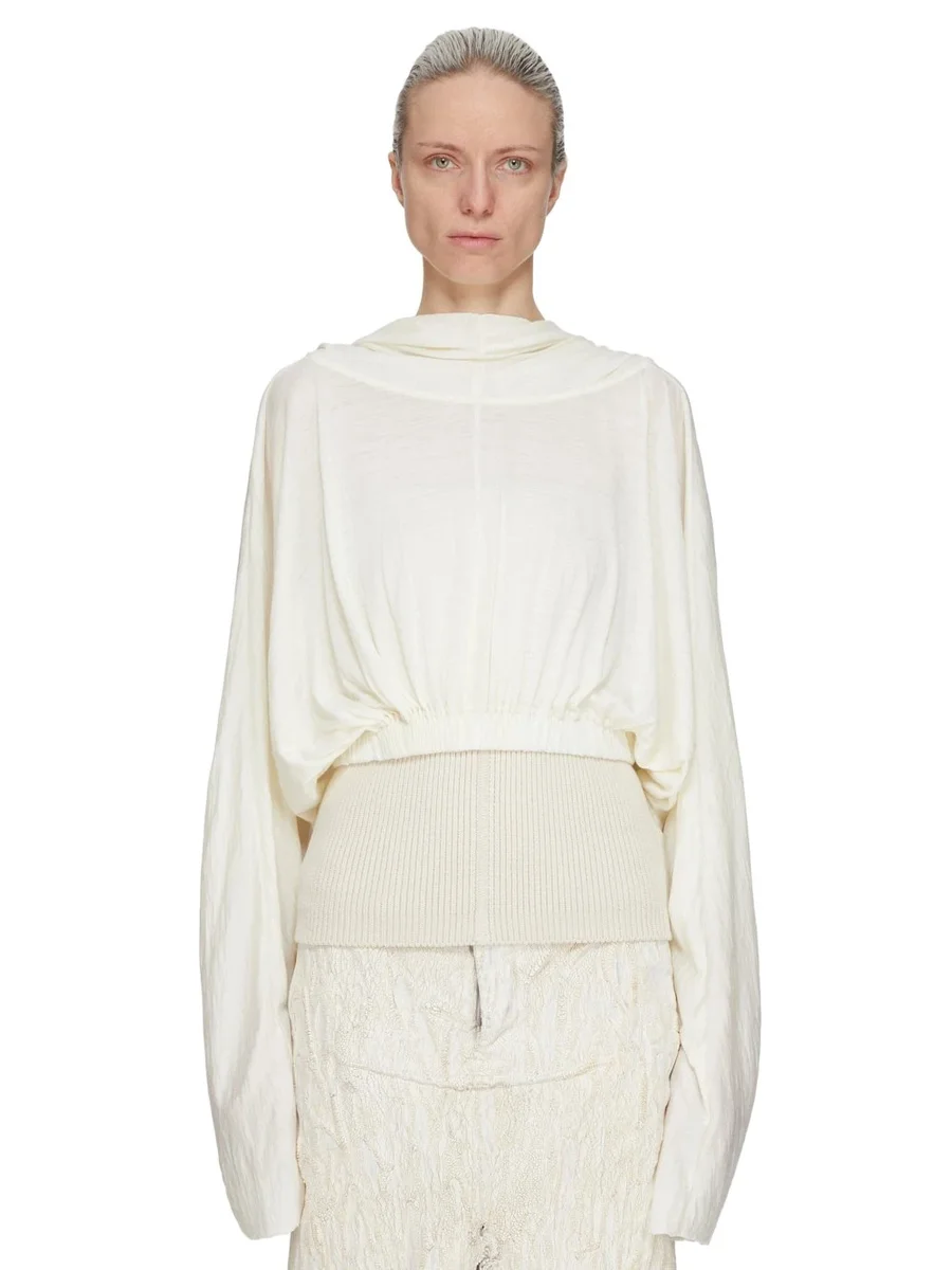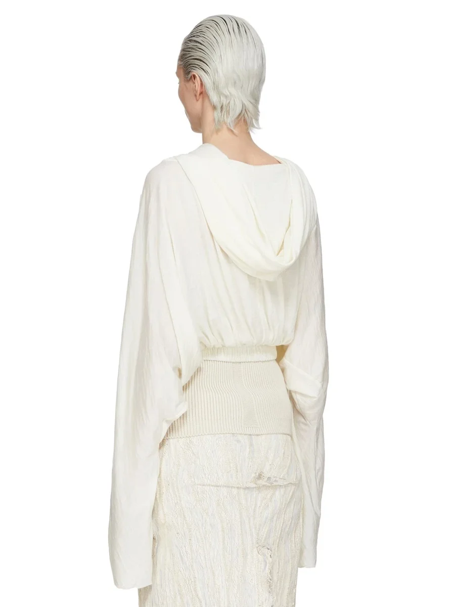 RICK OWENS FW25 CONCORDIANS RUNWAY CROPPED HOODED TUNIC IN NATURAL SILK WOOL JERSEY